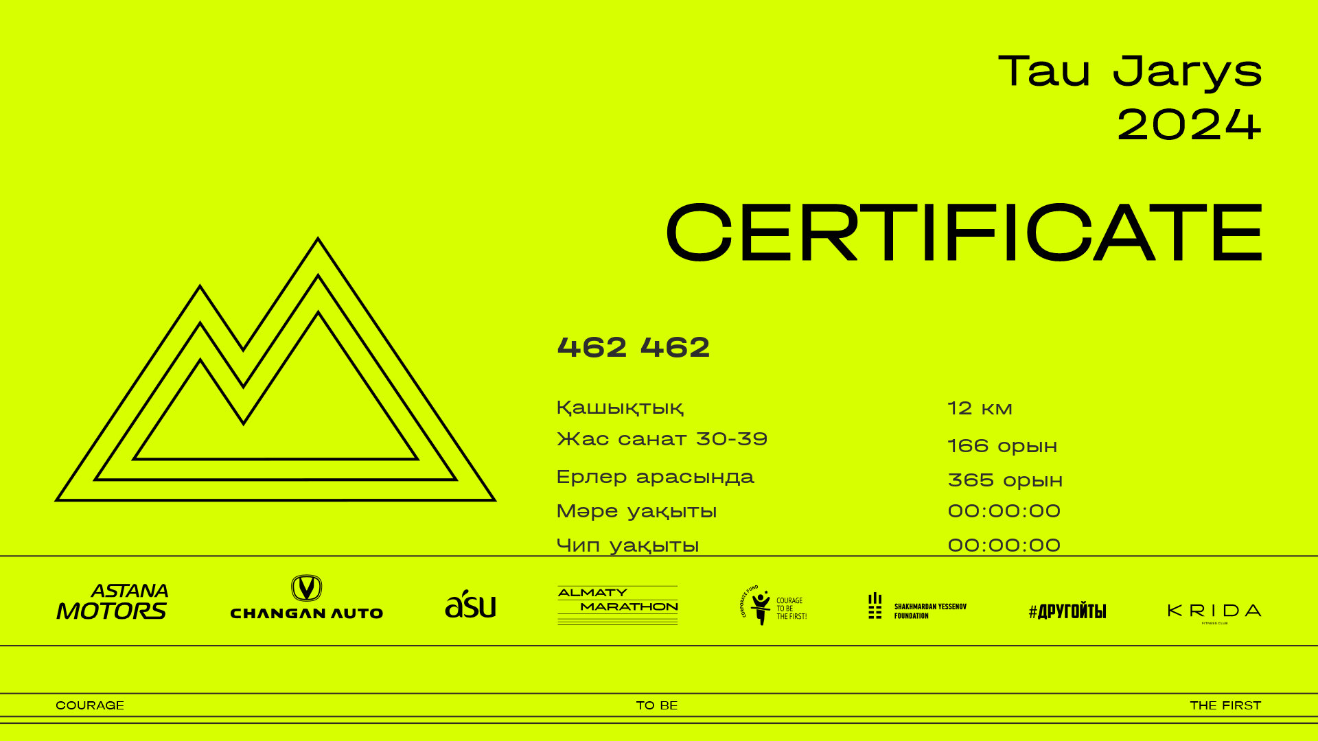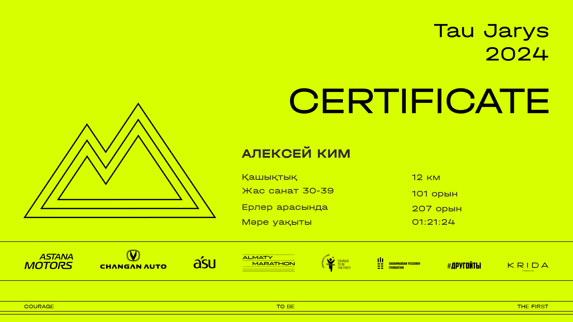 | 137 | Мади Айтимов | ![]() | Алматы | 310 | 00:09:59.30 | 00:24:33.52 | 00:46:04.55 | 01:00:26.30 | 01:12:41.51 | 01:12:33.68 | Жүктеп алу |