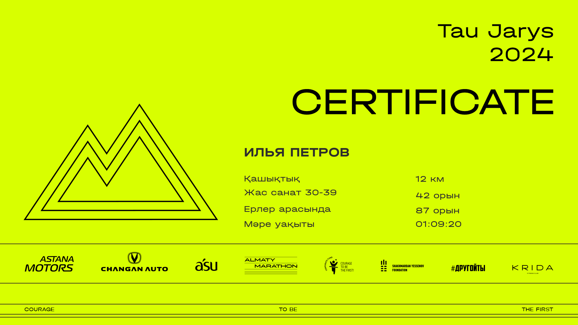 | 354 | Батырхан Конуспаев | ![]() | Алматы | 86 | 00:11:43.52 | 00:29:58.01 | 01:00:40.82 | 01:17:04.18 | 01:33:31.38 | 01:33:26.22 | Жүктеп алу |