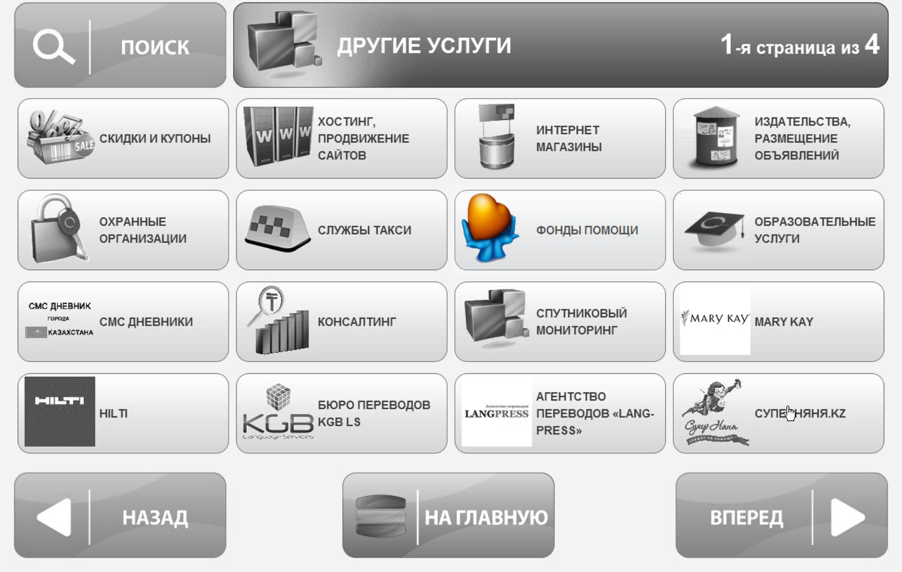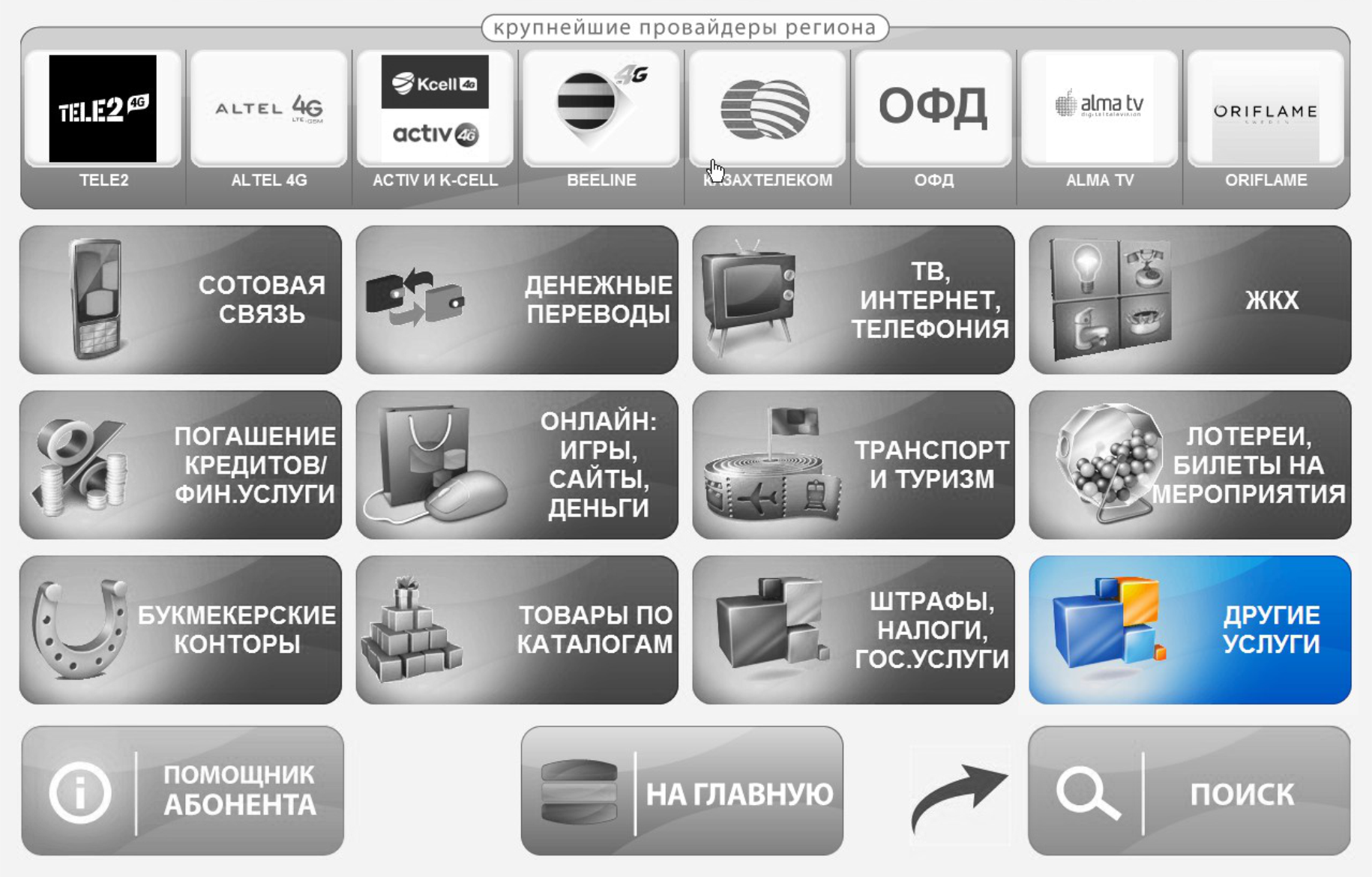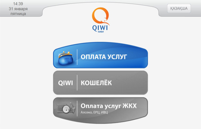 Шаг 1: На главном экране QIWI терминала выберите пункт “Оплата услуг”.