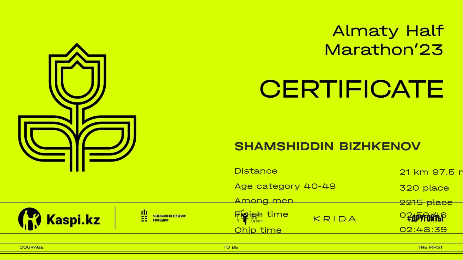 | 2725 | Yerden Salgara | ![]() | Алматы | 2251 | 00:40:01.63 | 01:23:57.92 | 01:59:30.44 | 02:38:41.21 | 02:47:09.64 | 02:45:08.10 | Download |