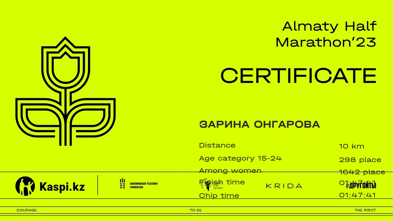 | 3502 | Зарина Онгарова | ![]() | Алматы | 6611 | 01:16:46.66 | 01:47:41.21 | 01:47:41.21 | Download |