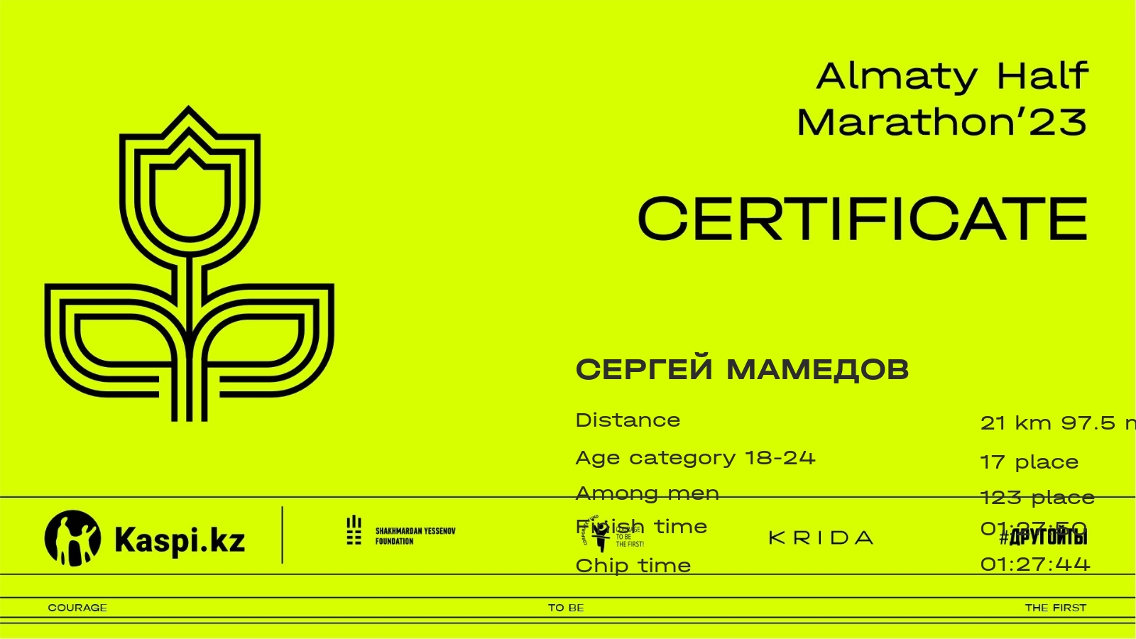 | 133 | Almaz Salimbayev | ![]() | Алматы | 1147 | 00:19:16.38 | 00:42:15.78 | 01:02:20.60 | 01:23:25.32 | 01:28:02.28 | 01:27:50.93 | Download |
