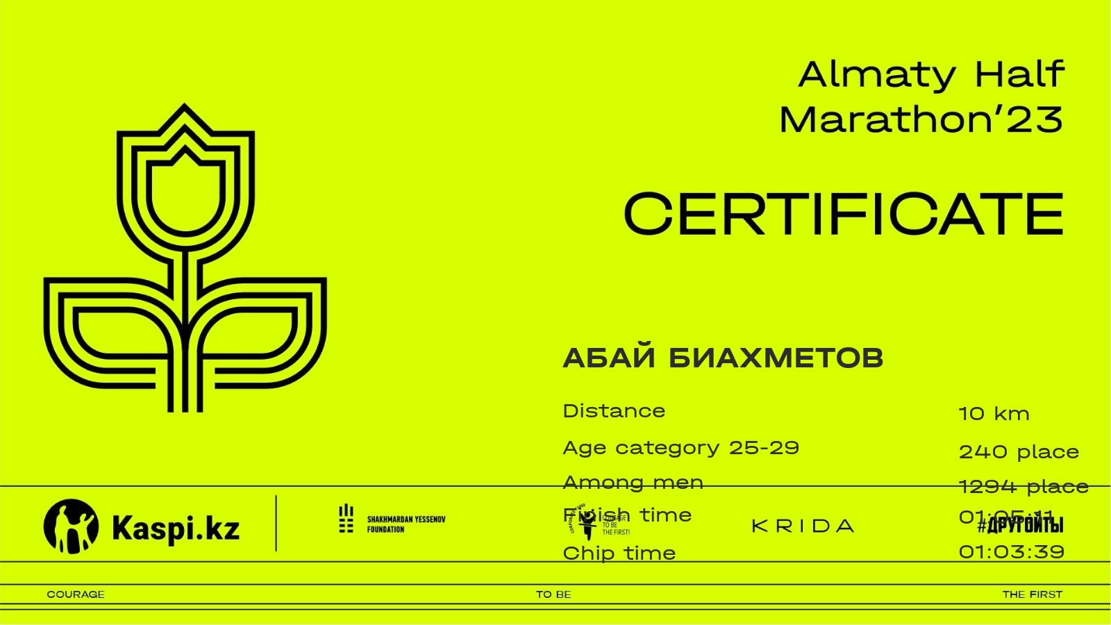 | 1832 | Алмаш Кабидолдина | ![]() | Алматы | 4767 | 00:44:45.65 | 01:05:09.59 | 01:03:11.54 | Download |