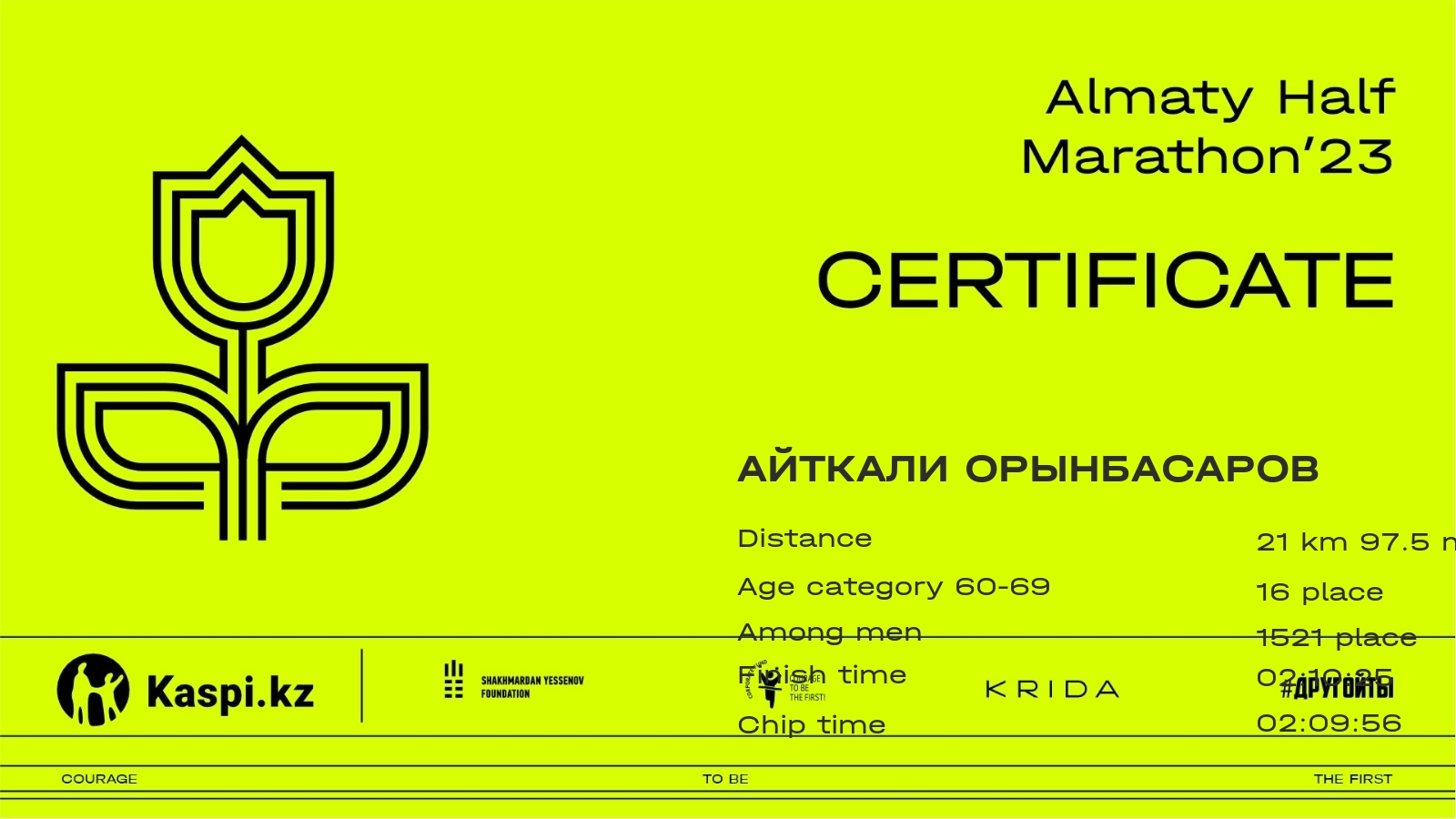 | 1755 | Айткали Орынбасаров | ![]() | Алматы | 547 | 00:29:01.97 | 01:02:00.58 | 01:31:21.54 | 02:03:29.87 | 02:10:25.06 | 02:09:56.37 | Download |