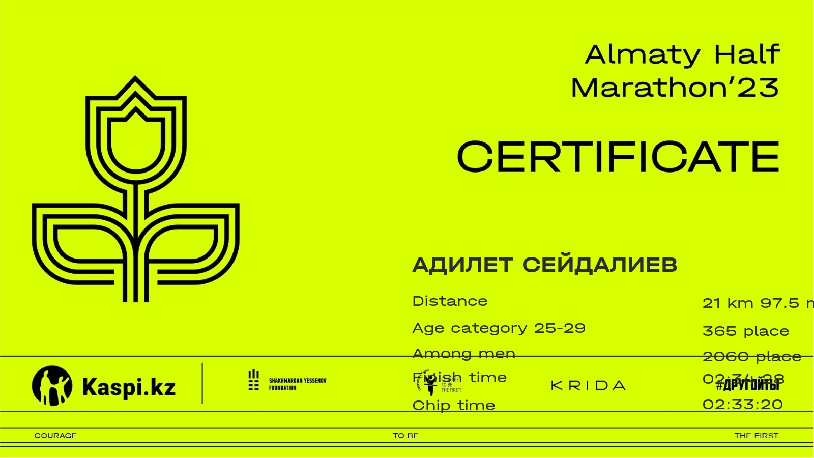 | 2489 | Аян Хайрула | ![]() | Алматы | 1663 | 00:37:09.29 | 01:11:46.65 | 01:44:35.20 | 02:25:35.01 | 02:33:35.51 | 02:31:32.23 | Download |