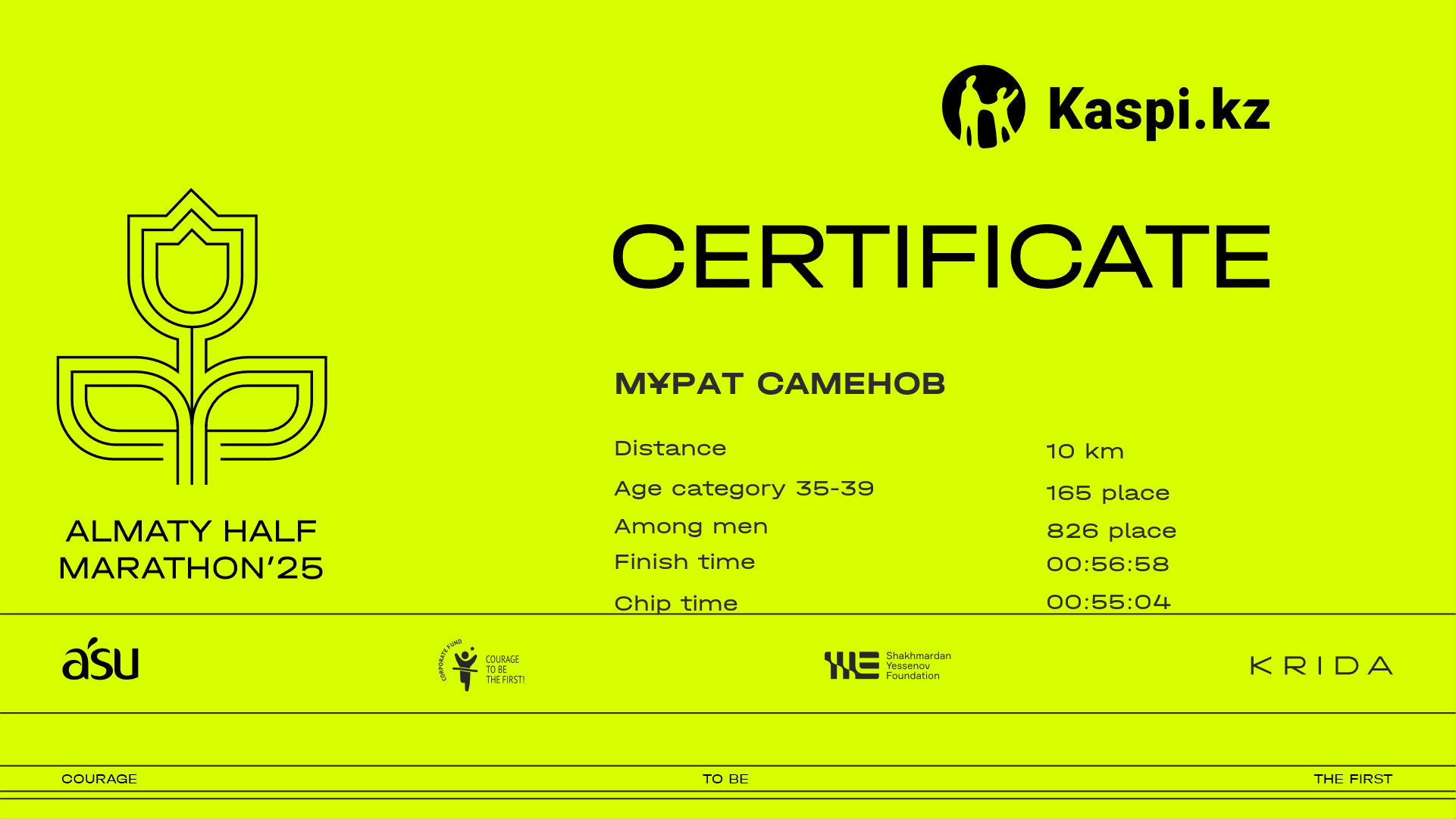 | 4837 | Мухамаджан Саутов | ![]() | Алматы | 10136 | 01:03:19 | 01:37:43 | 01:35:43 | Download |