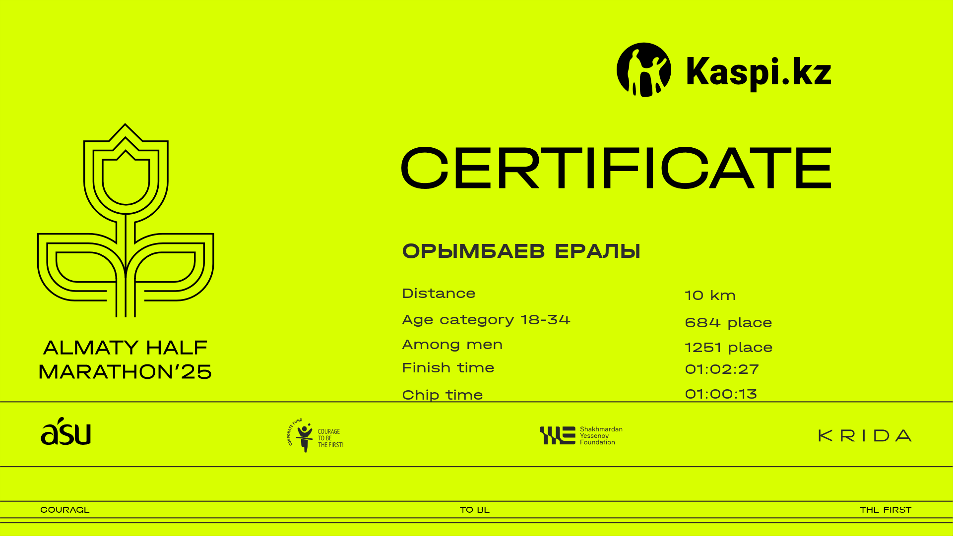 | 4848 | Ольга Картавых | ![]() | Алматы | 7610 | 01:05:12 | 01:38:07 | 01:33:21 | Download |
