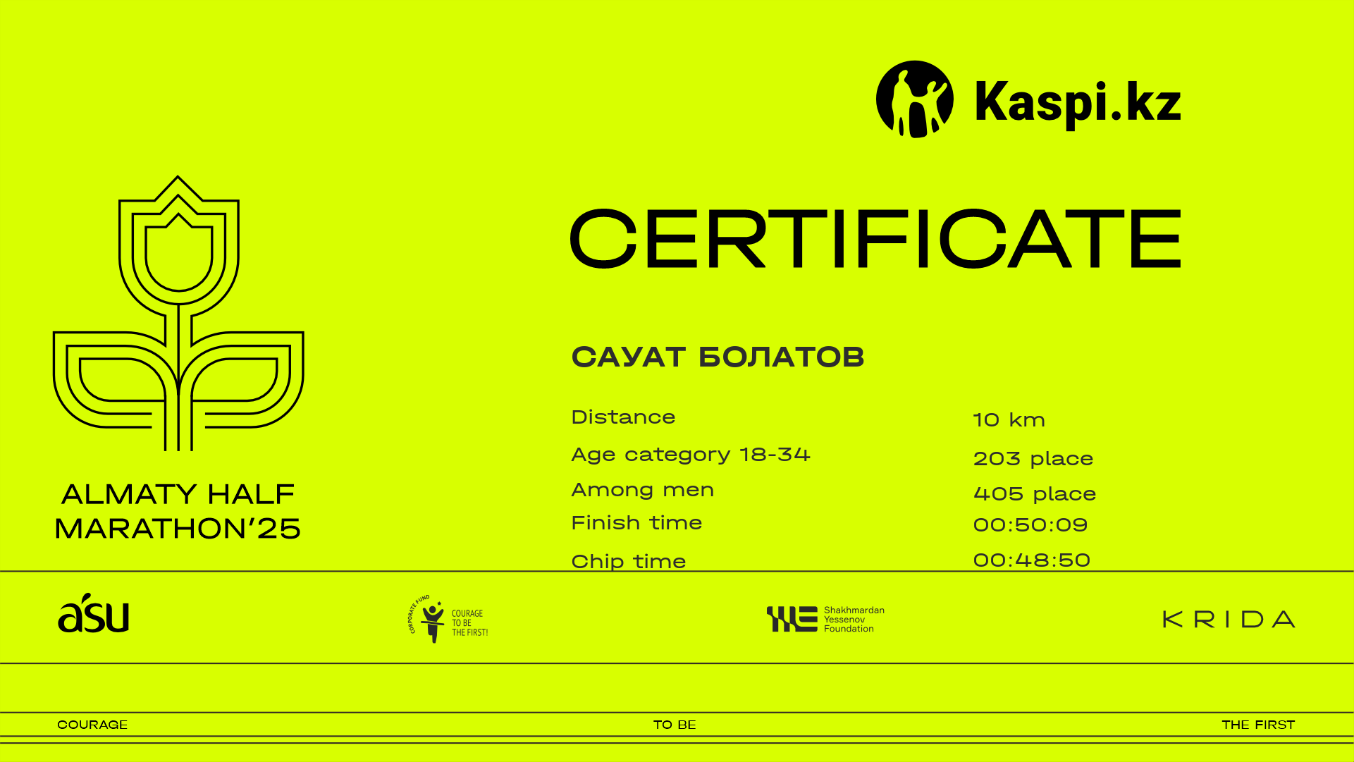 | 511 | Сауат Болатов | ![]() | Алматы | 8185 | 00:33:23 | 00:50:09 | 00:48:50 | Download |