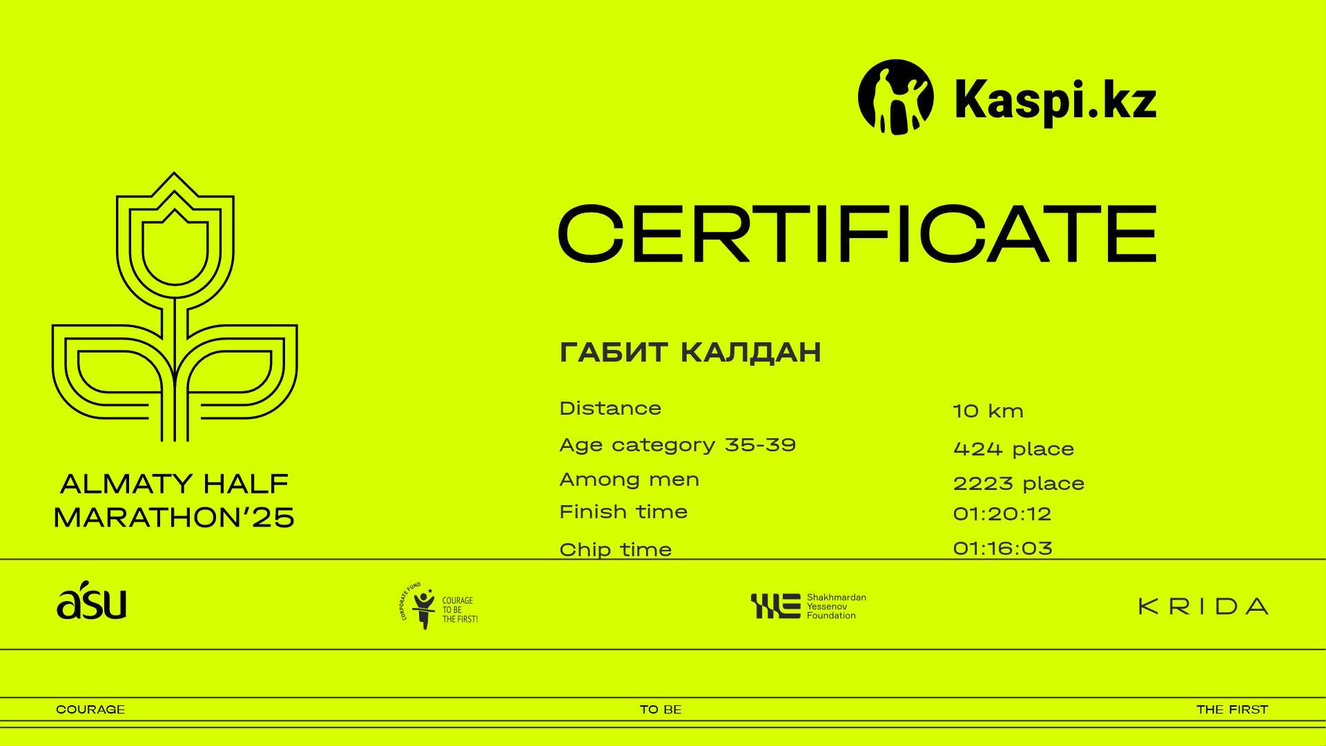 | 3898 | Артём Ларин | ![]() | Алматы | 4470 | 00:53:44 | 01:20:50 | 01:19:38 | Download |