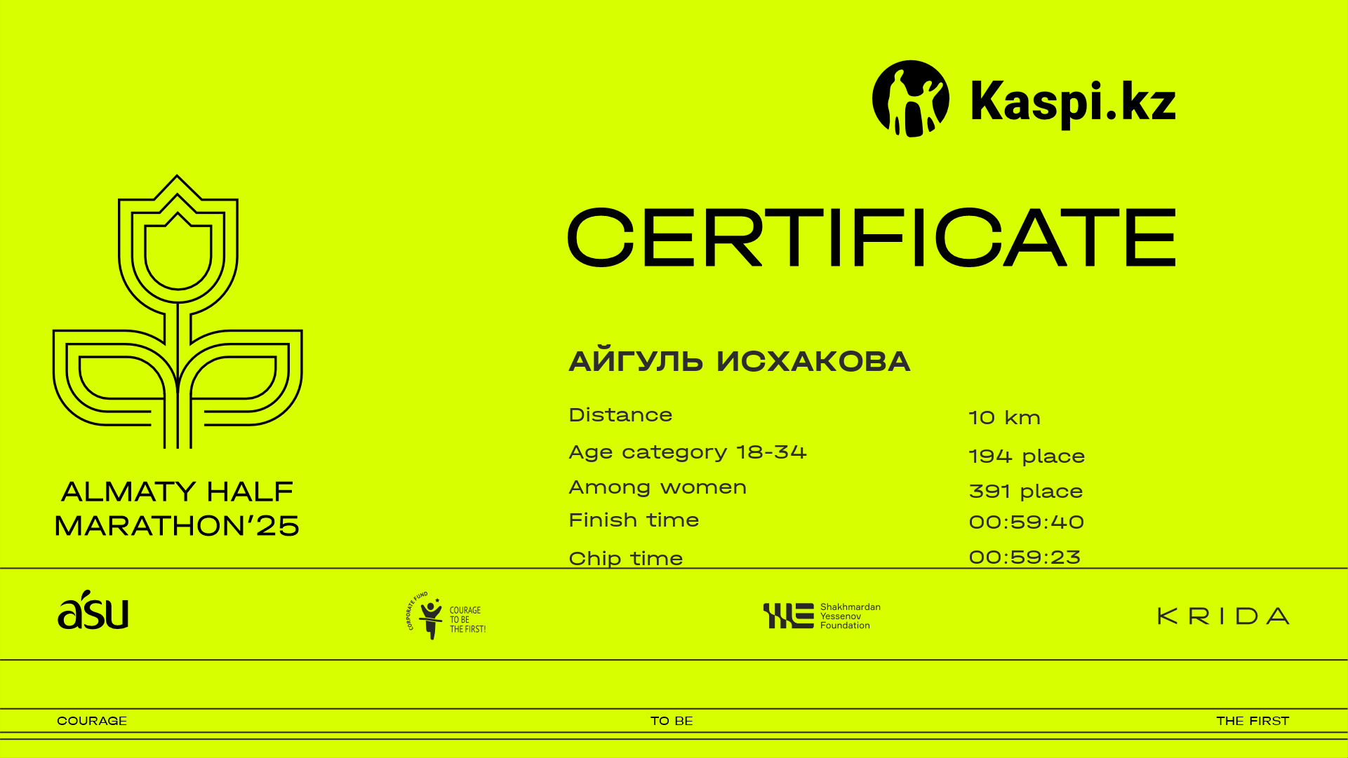 | 1421 | Ерболат Несіпбеков | ![]() | Алматы | 6171 | 00:39:05 | 00:59:45 | 00:58:25 | Download |