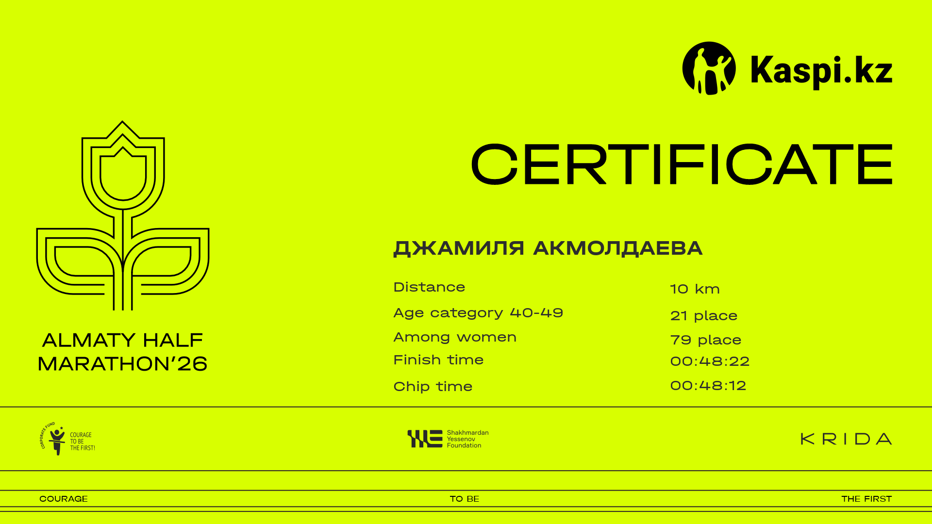 | 91 | Асель Буденеева | ![]() | Almaty | 6826 | 00:24:31 | 00:32:34 | 00:34:51 | 00:49:00 | Download |