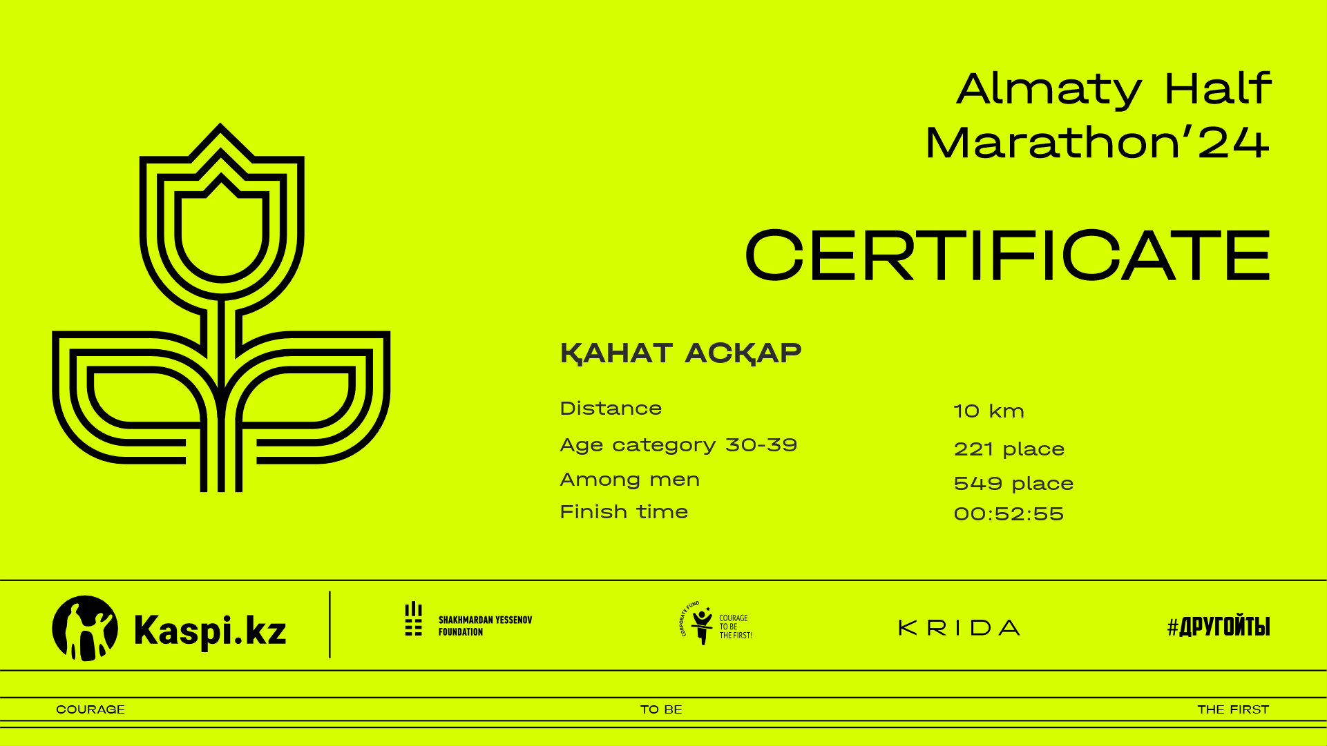 | 3820 | Әділет Тастанбеков | ![]() | Алматы | 7992 | 01:05:30 | 01:38:14 | 01:35:24 | Download |