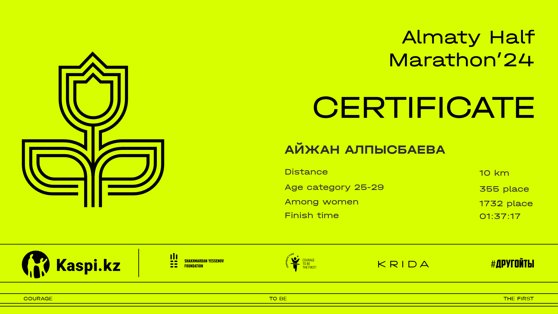 | 3796 | Айжан Алпысбаева | ![]() | Алматы | 8077 | 01:07:16 | 01:37:17 | 01:34:06 | Download |