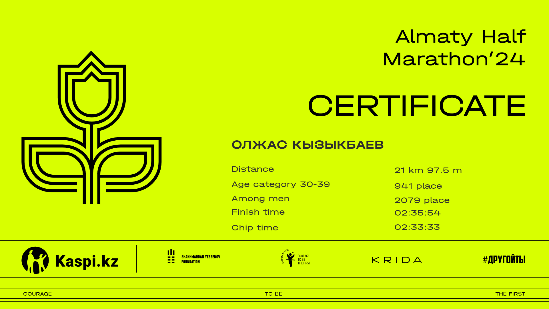 | 2492 | Олжас Кызыкбаев | ![]() | Алматы | 2638 | 00:31:52 | 01:08:38 | 01:44:06 | 02:27:02 | 02:35:54 | 02:33:33 | Download |