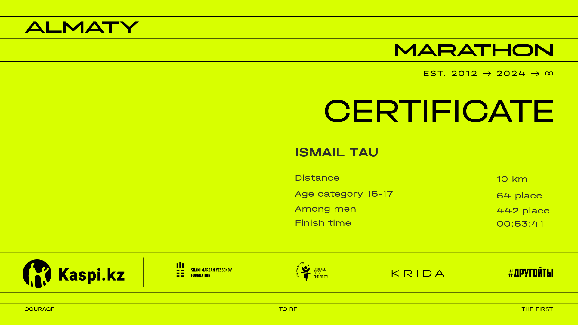 | 504 | Ismail Tau | ![]() | Almaty | 6780 | 00:40:37.52 | 00:53:41.17 | 00:51:24.88 | Download |