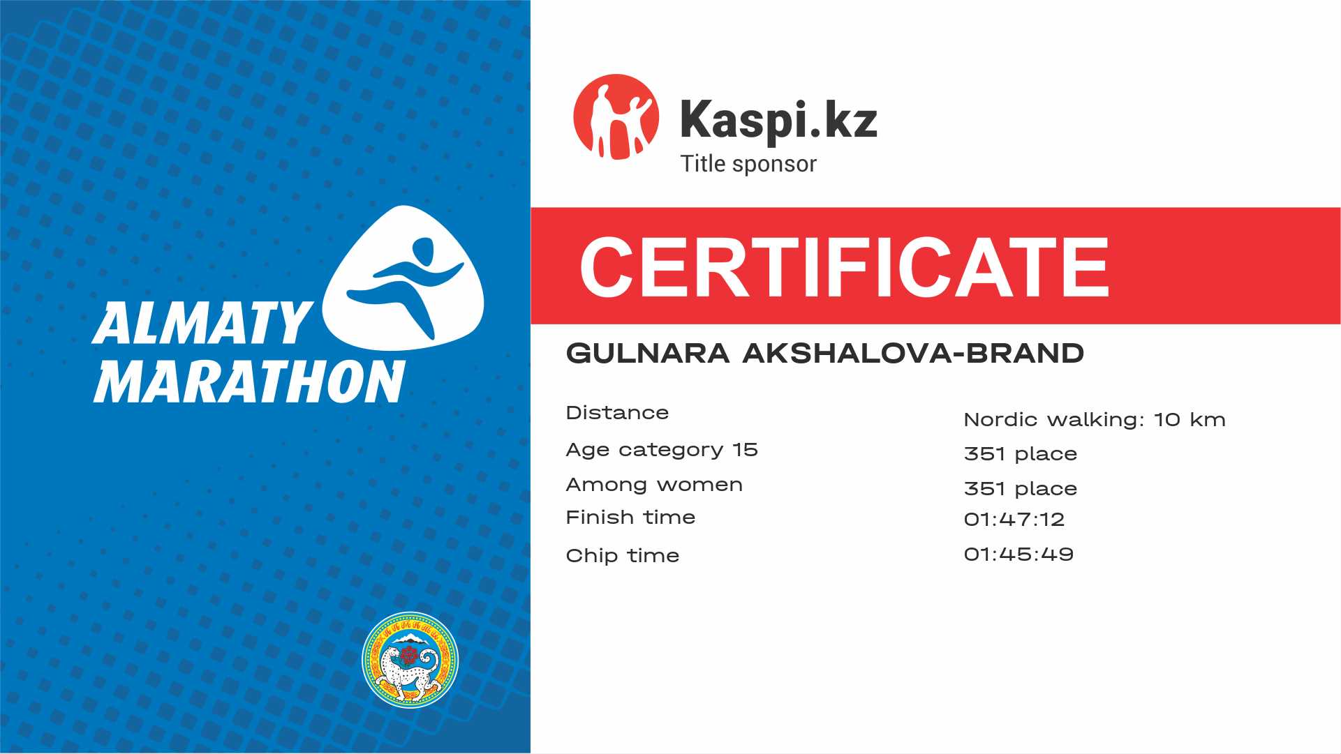 | 6867 | Gulnara Akshalova-Brand | ![]() | Алматы | 9897 | 01:22:23 | 01:47:12 | 01:45:49 | Download |