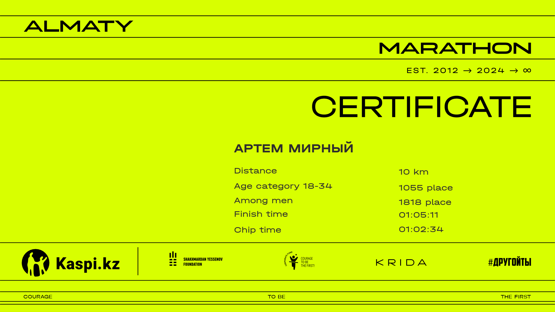 | 5469 | Маргулан Таниртаев | ![]() | Алматы | 5985 | 01:12:02.15 | 01:20:28.76 | 01:16:49.13 | Download |
