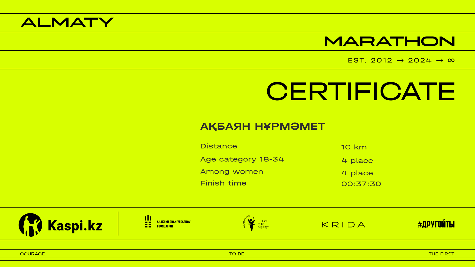 | 37 | Yerlan Abdykayev | ![]() | Алматы | 13150 | 00:32:51.46 | 00:37:18.82 | 00:37:17.22 | Download |