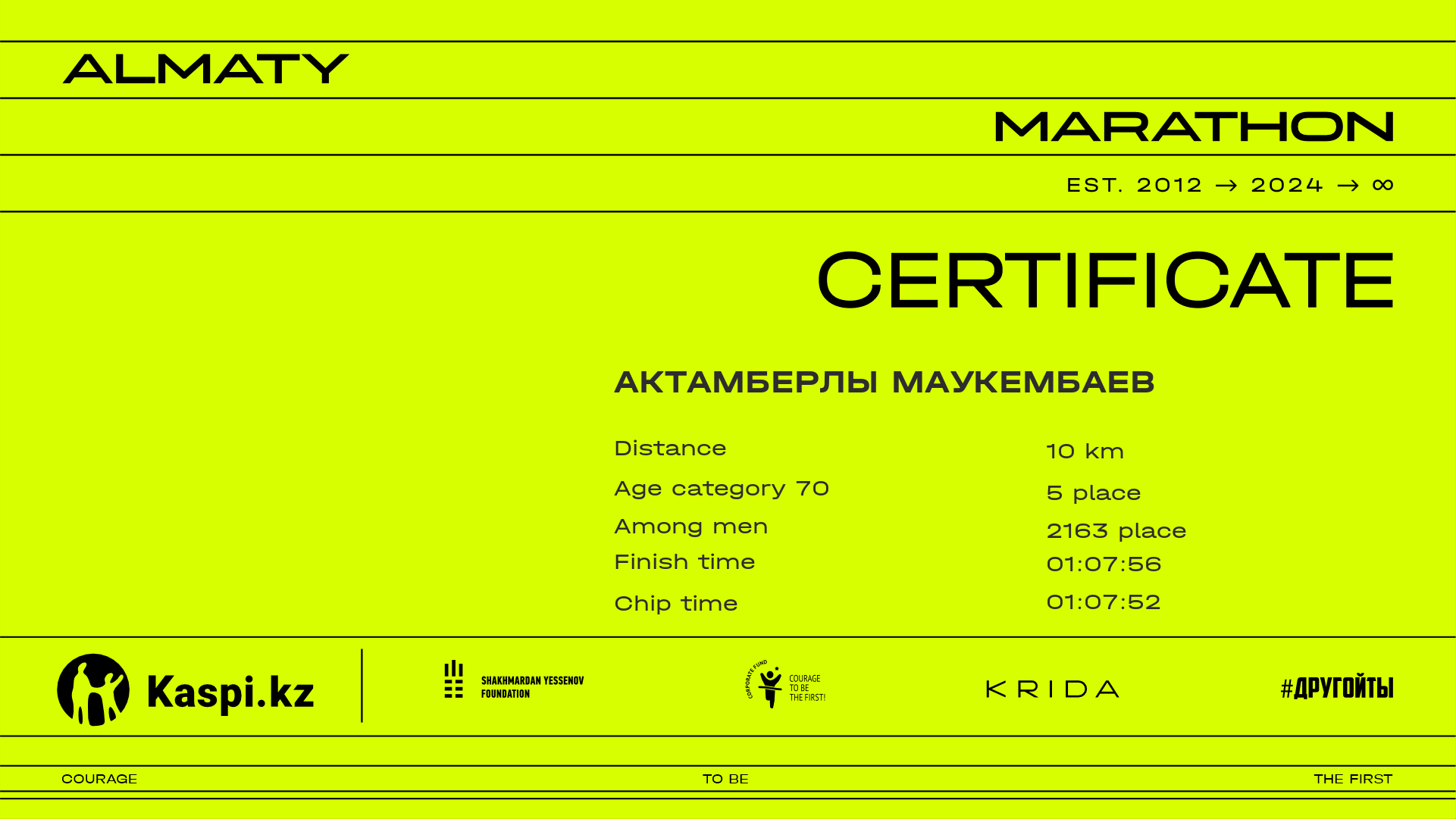 | 7689 | Тахир Жораев | ![]() | Алматы | 10377 | 01:31:48.69 | 01:41:44.81 | 01:39:12.87 | Download |