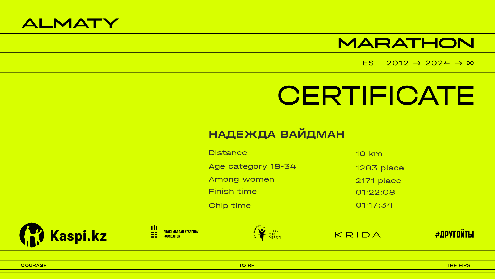 | 5762 | Надежда Вайдман | ![]() | Алматы | 9440 | 01:11:50.35 | 01:22:08.97 | 01:17:34.51 | Download |