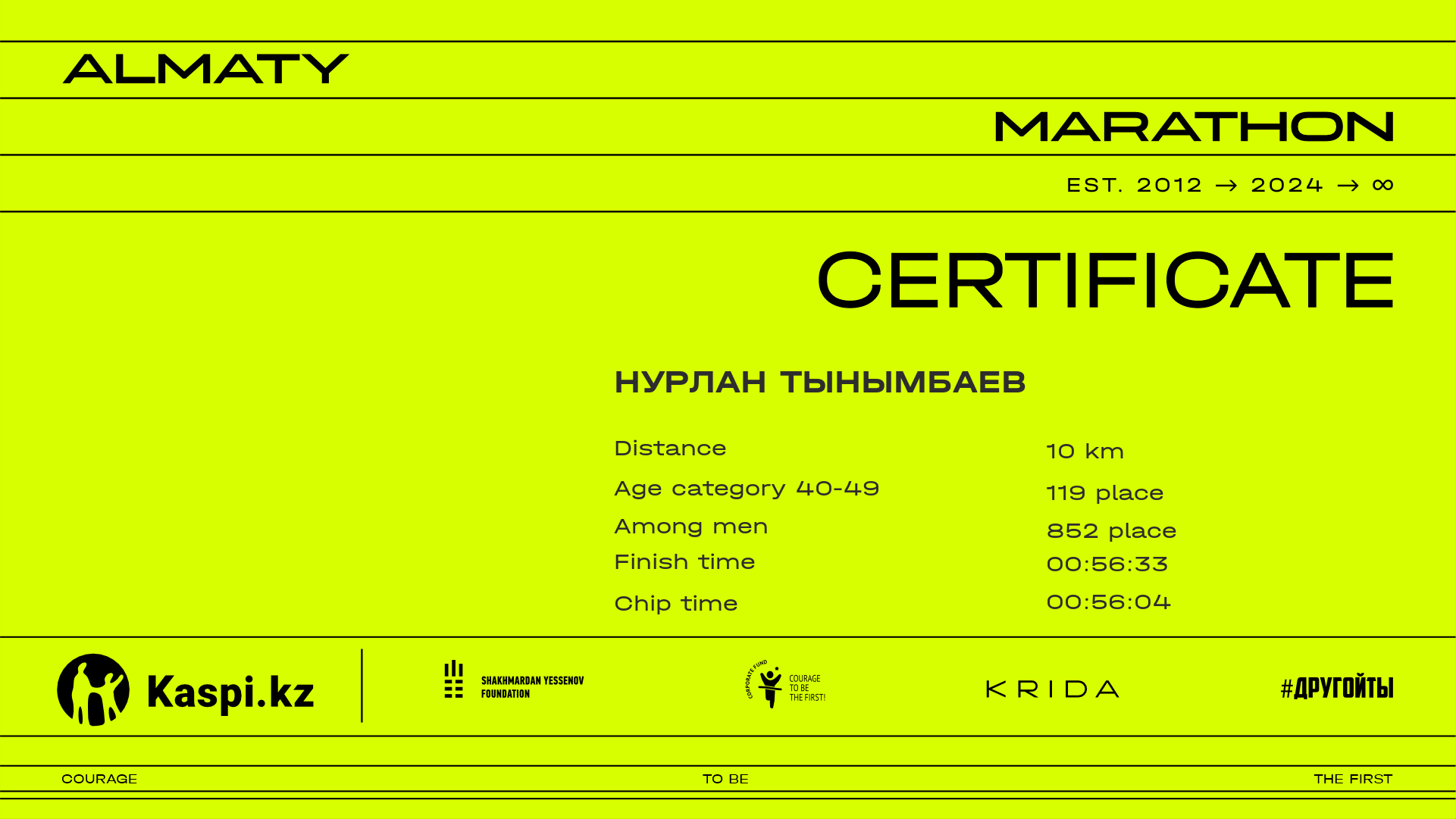 | 1046 | Нурлан Тынымбаев | ![]() | Алматы | 9702 | 00:49:20.41 | 00:56:33.26 | 00:56:04.83 | Download |