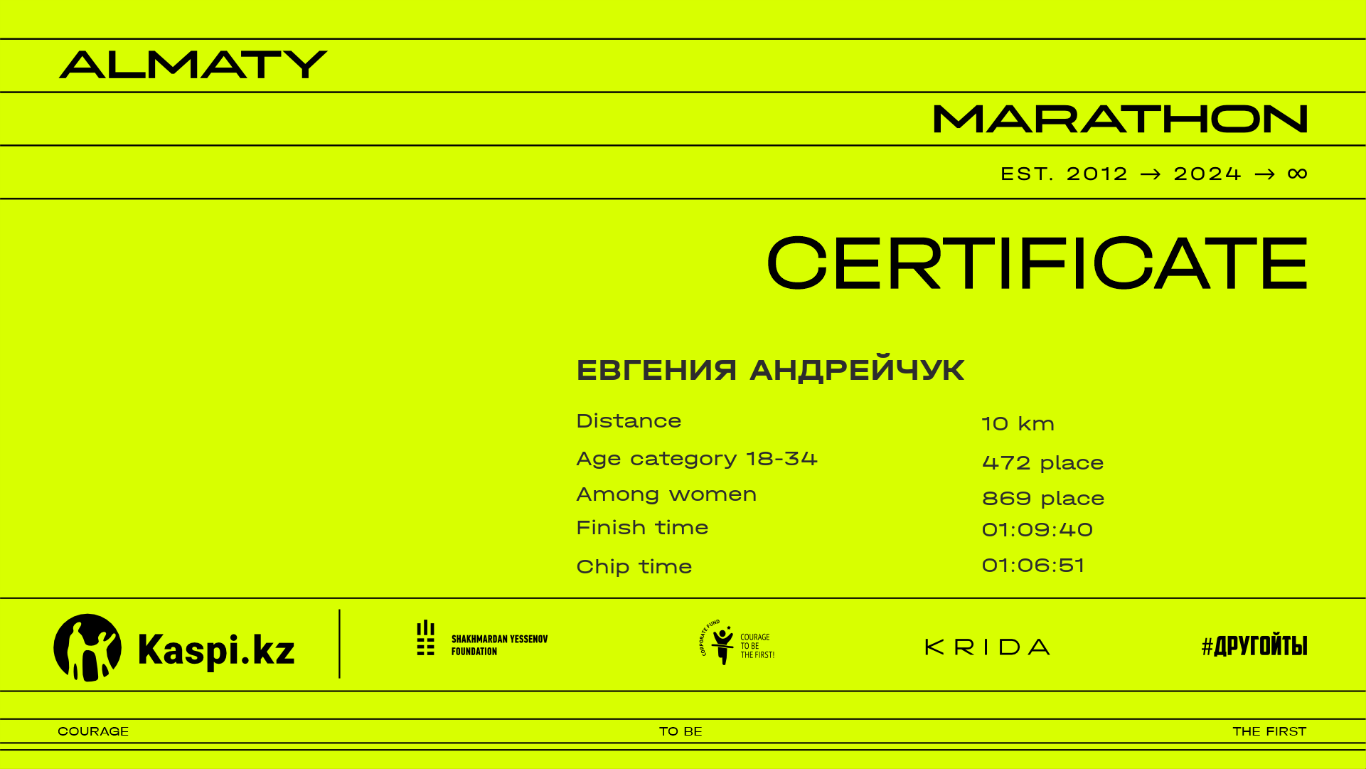 | 7785 | Салтанат Сегизбаева | ![]() | Алматы | 7389 | 01:32:49.52 | 01:44:12.41 | 01:40:47.52 | Download |