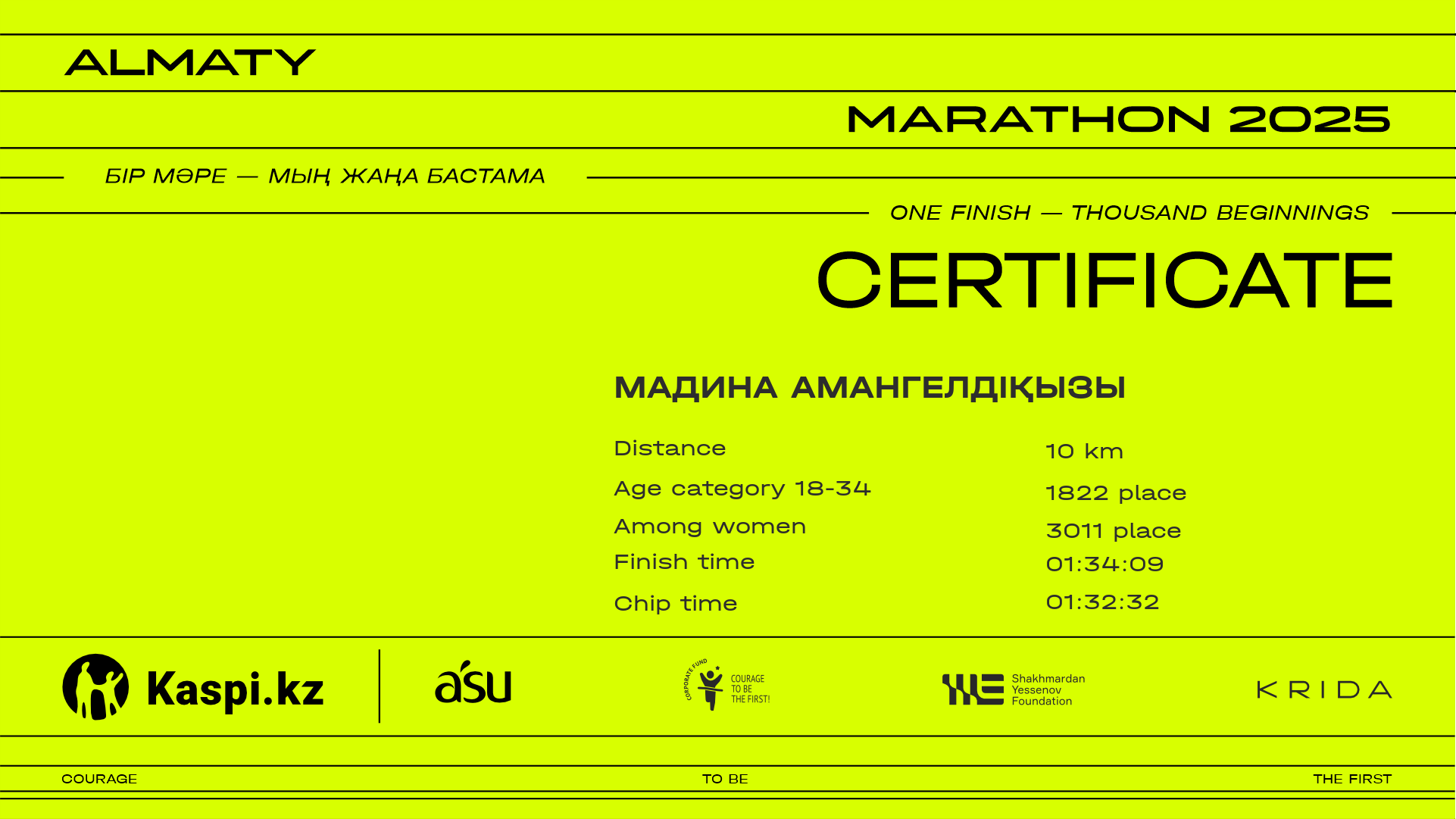 | 3011 | Мадина Амангелдіқызы | ![]() | Алматы | 13410 | 01:21:03 | 01:34:09 | 01:32:32 | Download |