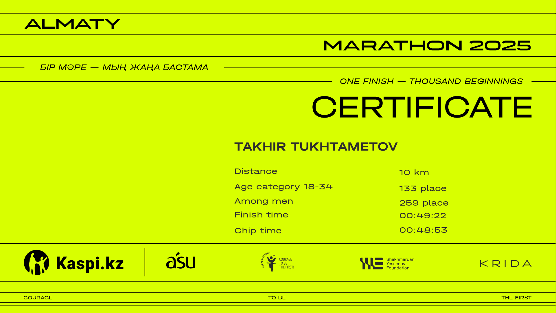 | 328 | Бексултан Алтынбеков | ![]() | Алматы | 10170 | 00:42:49 | 00:49:34 | 00:49:15 | Download |