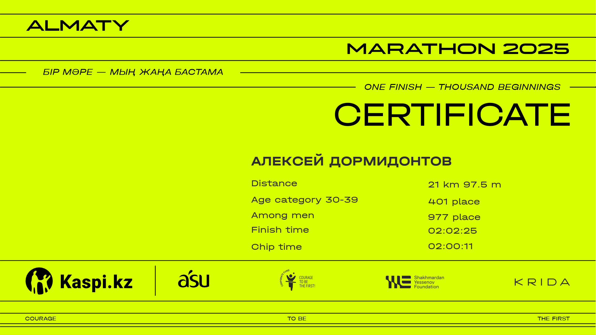 | 1175 | Alibi Zhumagulov | ![]() | Алматы | 5775 | 00:29:48 | 00:58:13 | 01:25:39 | 01:55:56 | 02:02:58 | 02:01:00 | Download |