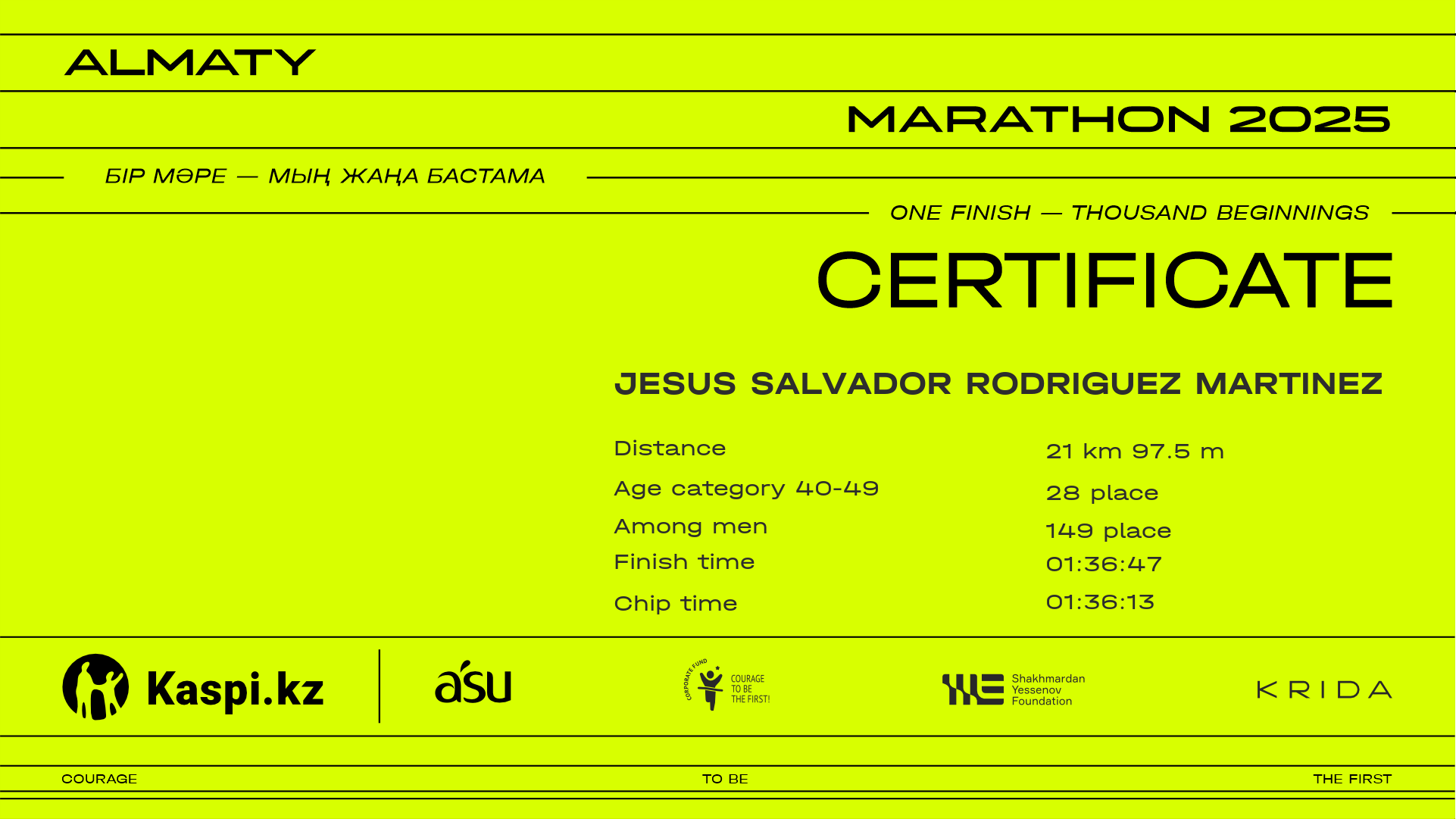 | 175 | Yerassyl Zhanibek | ![]() | Алматы | 4950 | 00:24:39 | 00:47:42 | 01:08:49 | 01:32:11 | 01:37:18 | 01:35:19 | Download |
