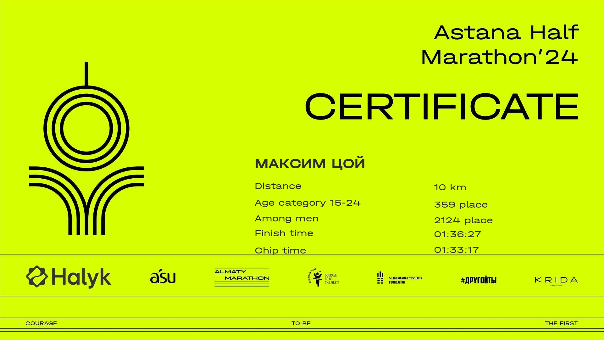 | 3479 | Azamat Salykov | ![]() | Алматы | 3740 | 00:55:37.13 | 01:26:46.06 | 01:33:27.14 | 01:33:27.14 | Download |