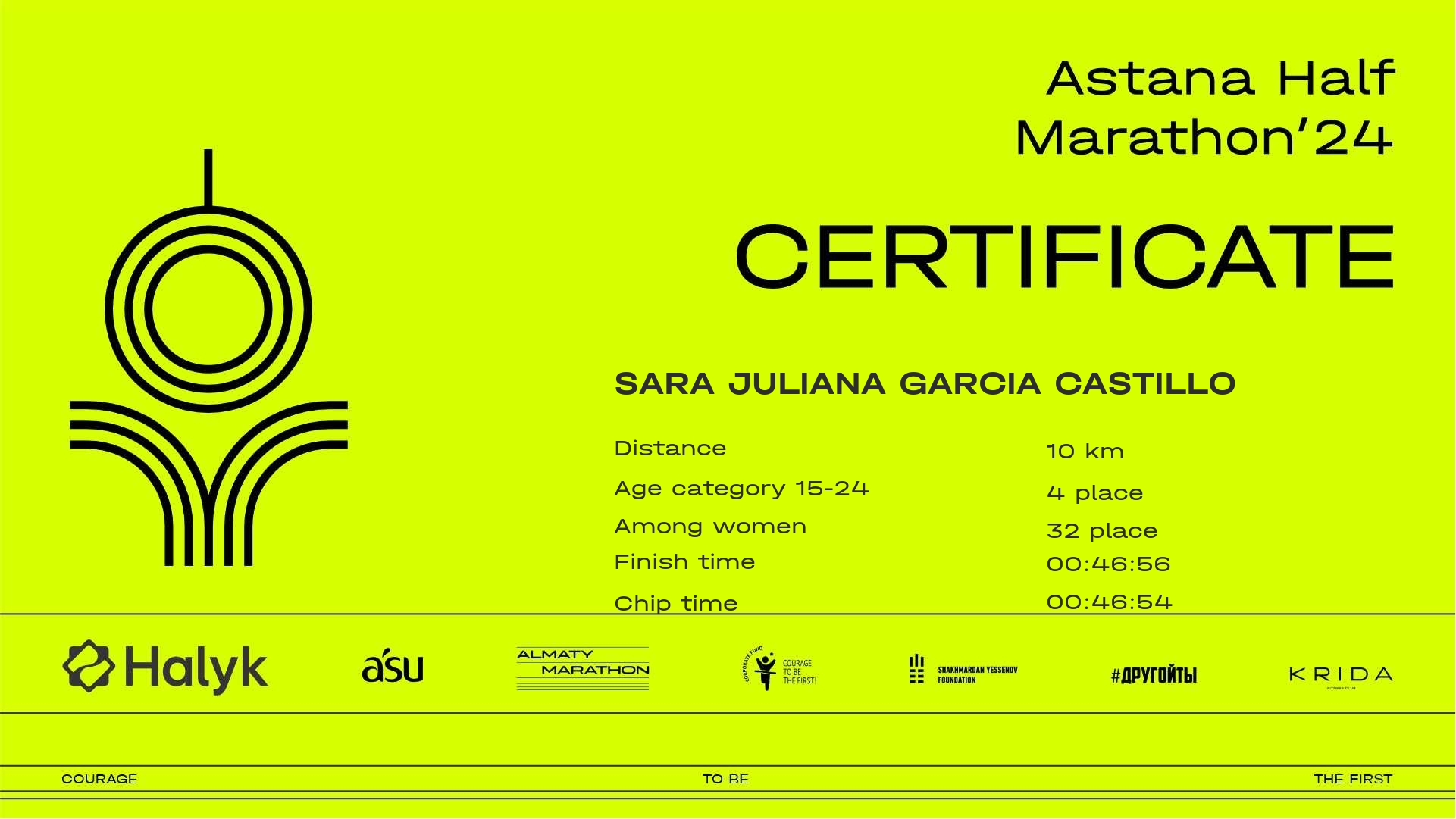 | 252 | Sara Juliana Garcia Castillo | ![]() | Cali | 4218 | 00:16:26.22 | 00:41:44.73 | 00:46:56.74 | 00:46:54.17 | Download |