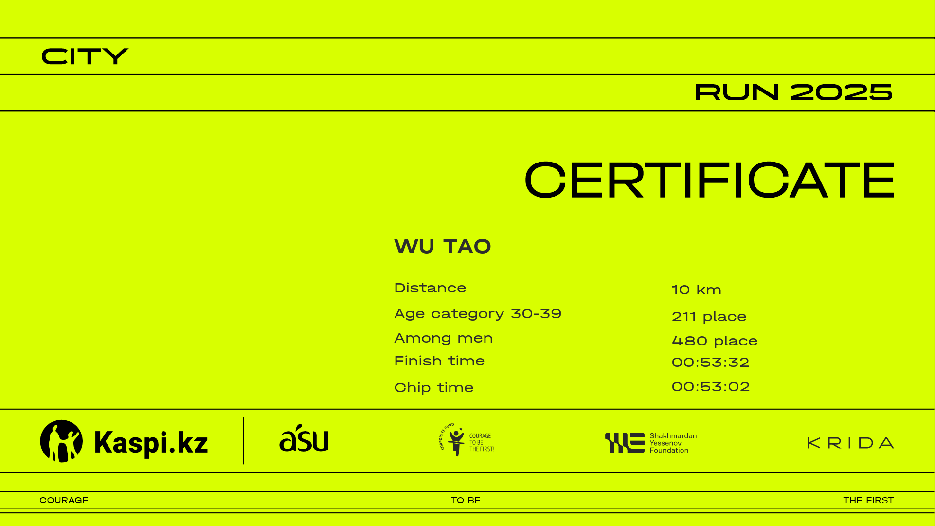 | 581 | Фархат Мустафаев | ![]() | Алматы | 1530 | 00:42:29 | 00:52:00 | 00:53:35 | 00:53:35 | Download | |||