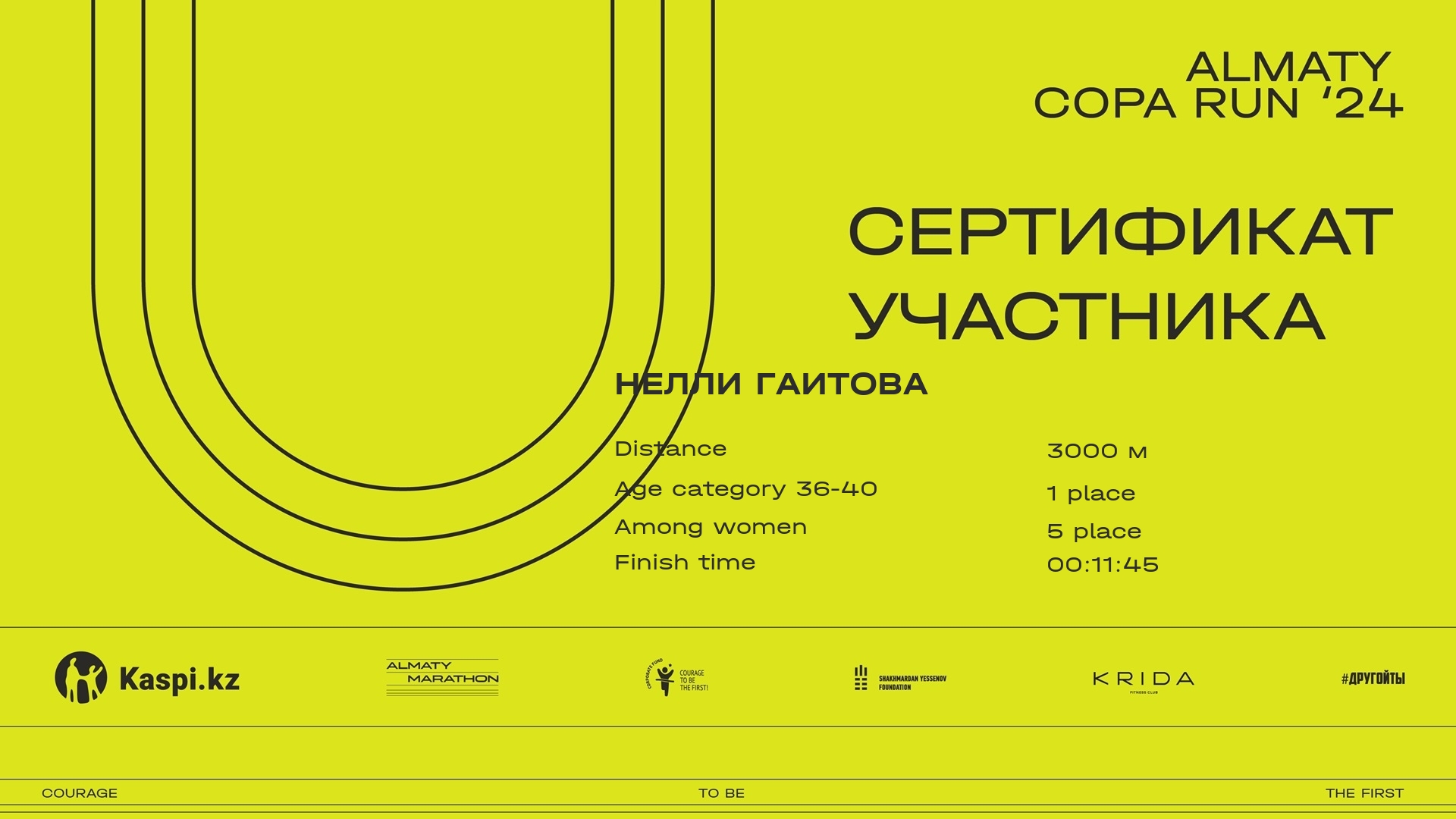 | 65 | Нелли Гаитова | ![]() | Алматы | 652 | 00:11:45.2 | Download |