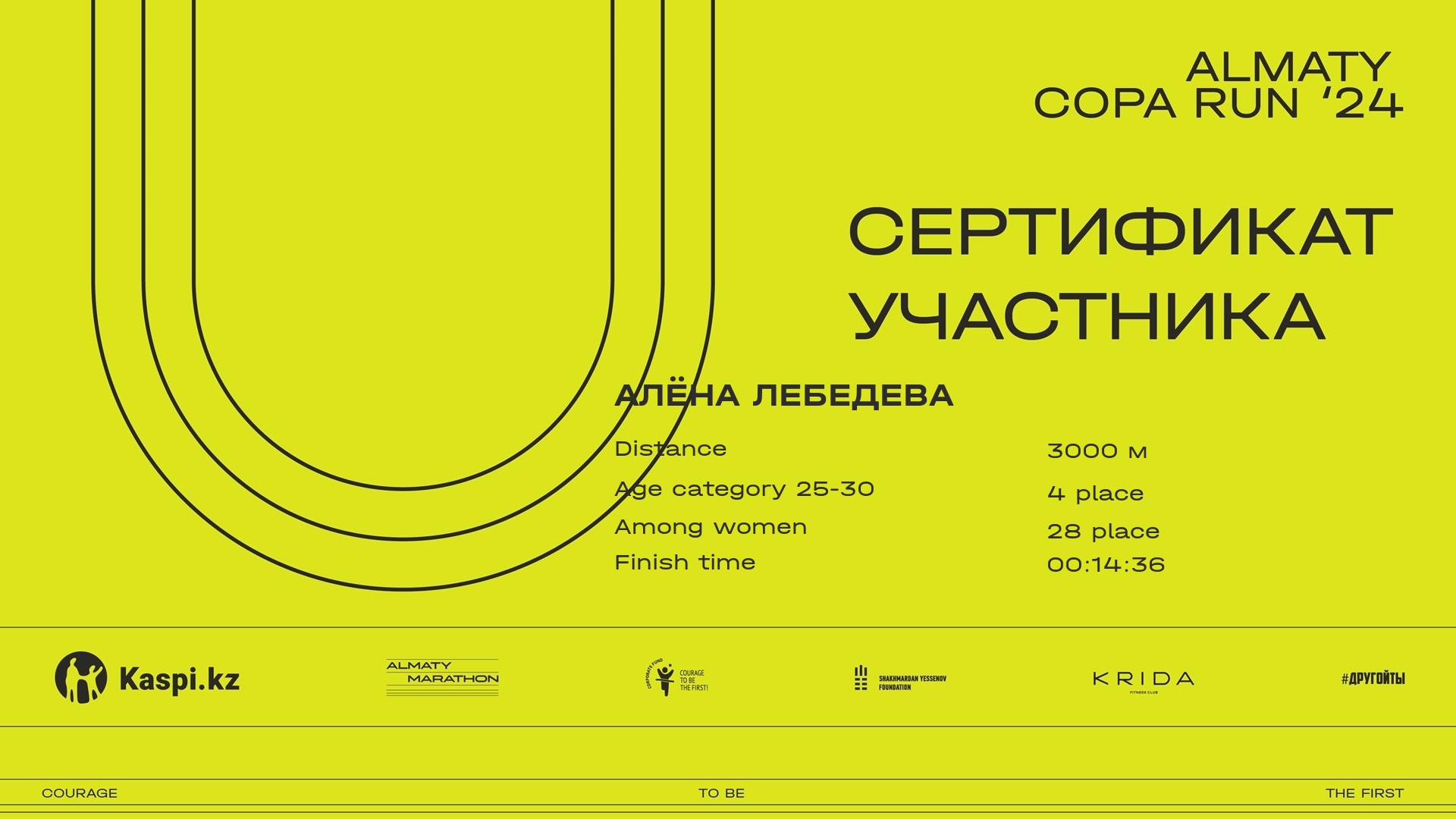 | 138 | Юлия Минчакова | ![]() | Алматы | 614 | 00:14:22.0 | Download |