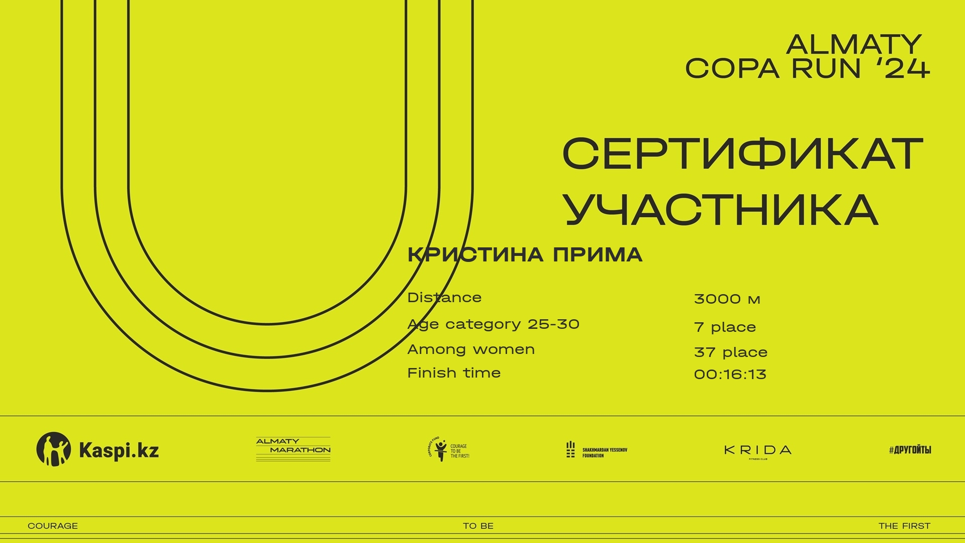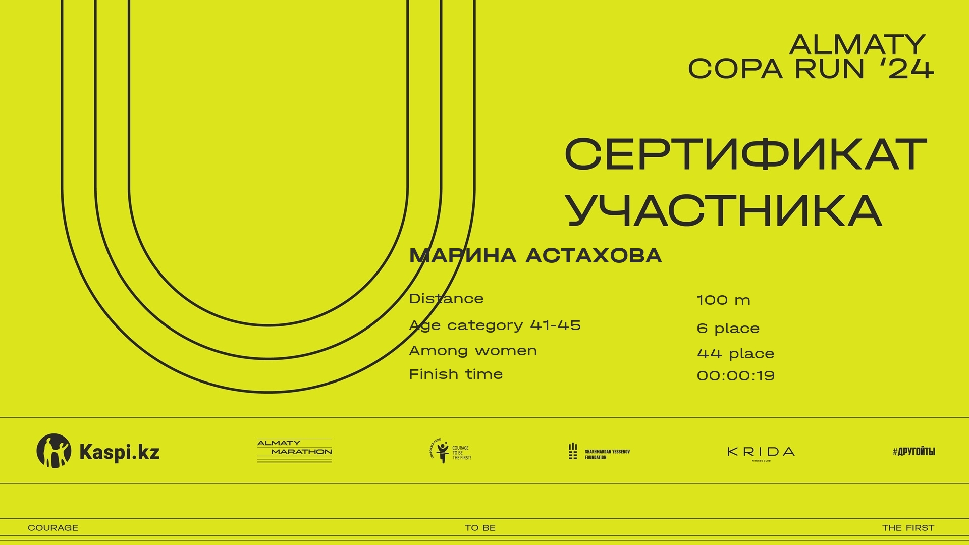 | 131 | Марина Астахова | ![]() | Алматы | 157 | 00:14:00.9 | Download |