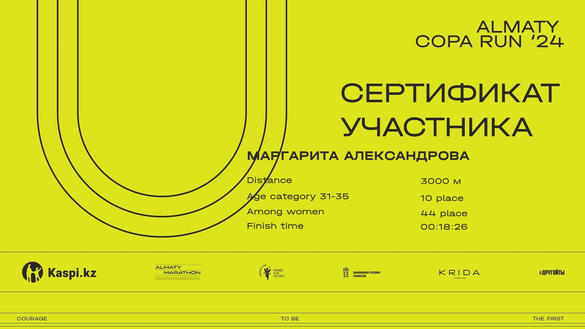 | 131 | Марина Астахова | ![]() | Алматы | 157 | 00:14:00.9 | Download |
