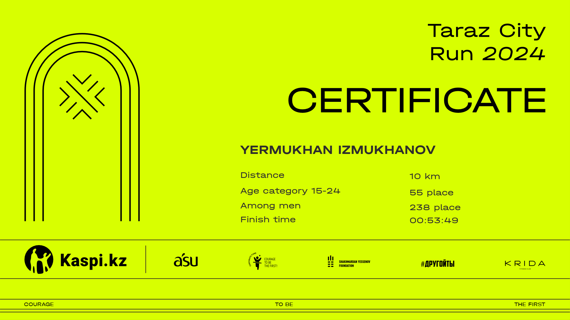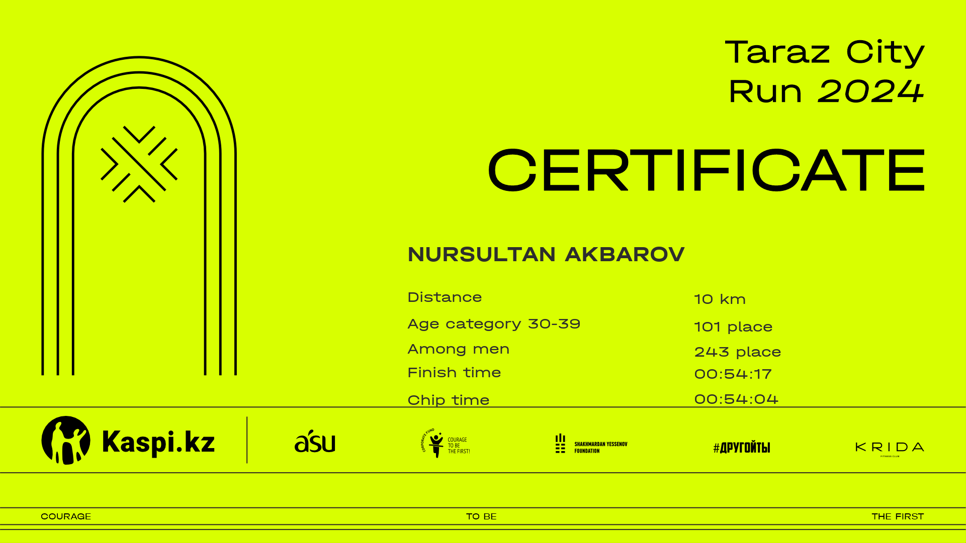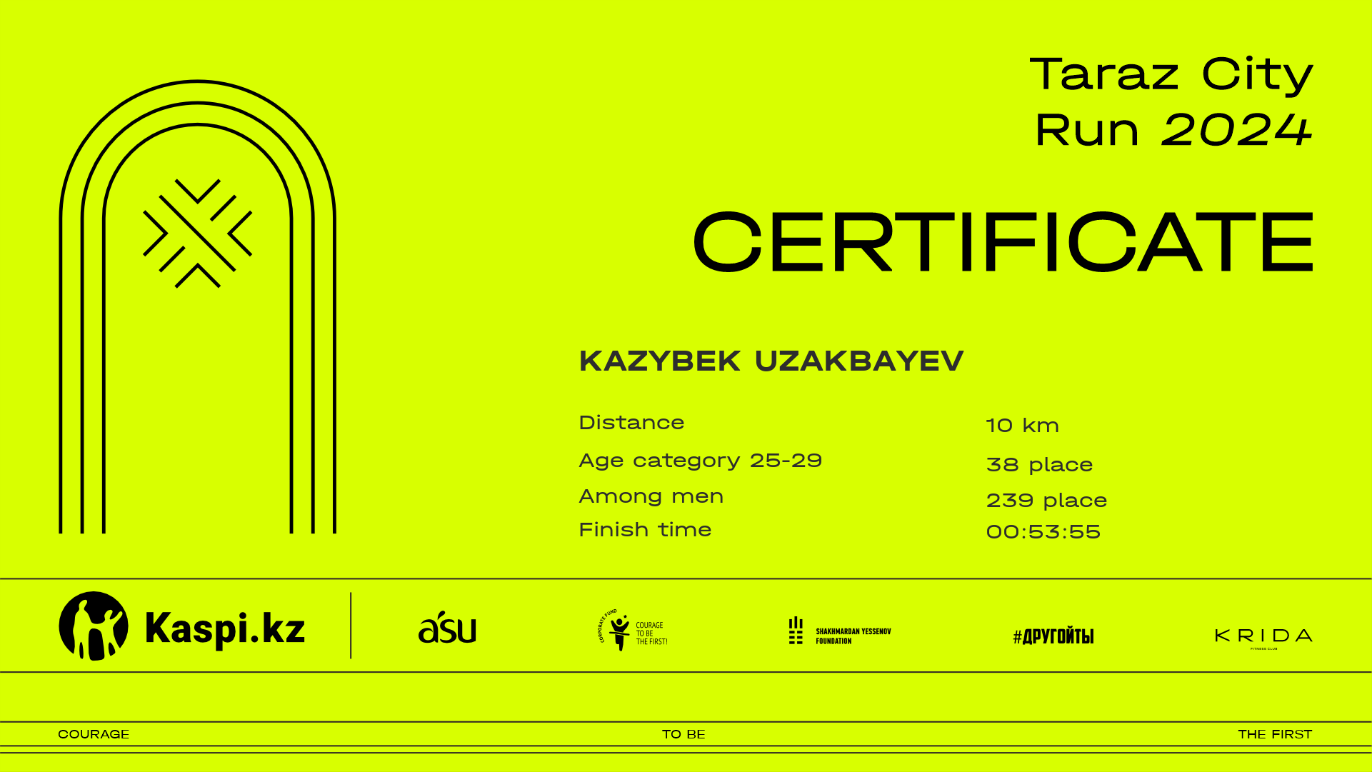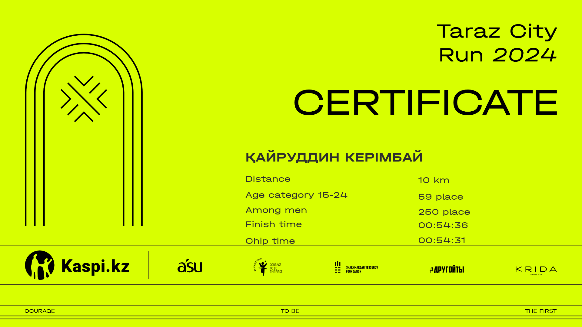 | 275 | Kazybek Uzakbayev | ![]() | Тараз | 23 | 00:11:44.50 | 00:25:39.90 | 00:39:56.80 | 00:53:55.80 | 00:53:48.00 | Download |
