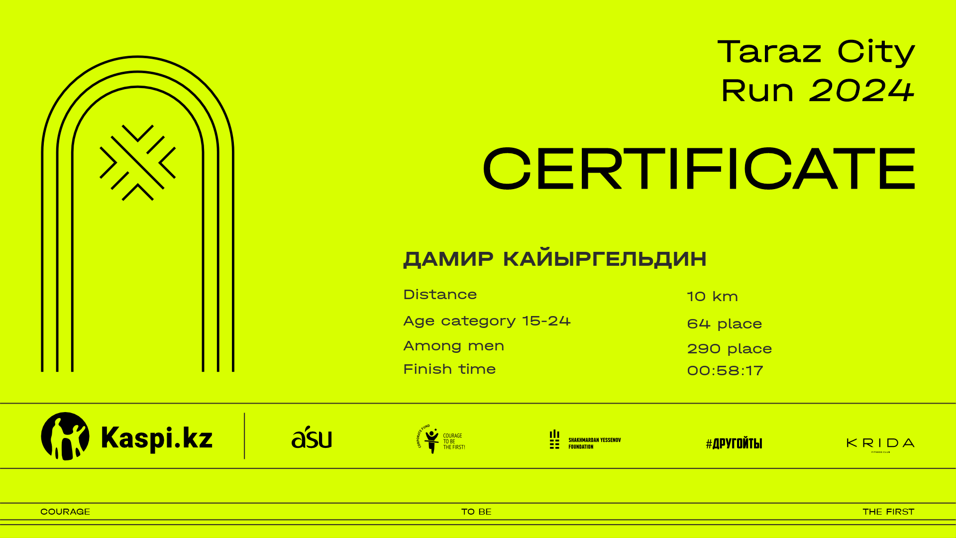 | 237 | Дархан Кемал | ![]() | Кызылорда | 51 | 00:12:50.00 | 00:25:25.40 | 00:38:31.00 | 00:51:53.10 | 00:51:42.40 | Download |