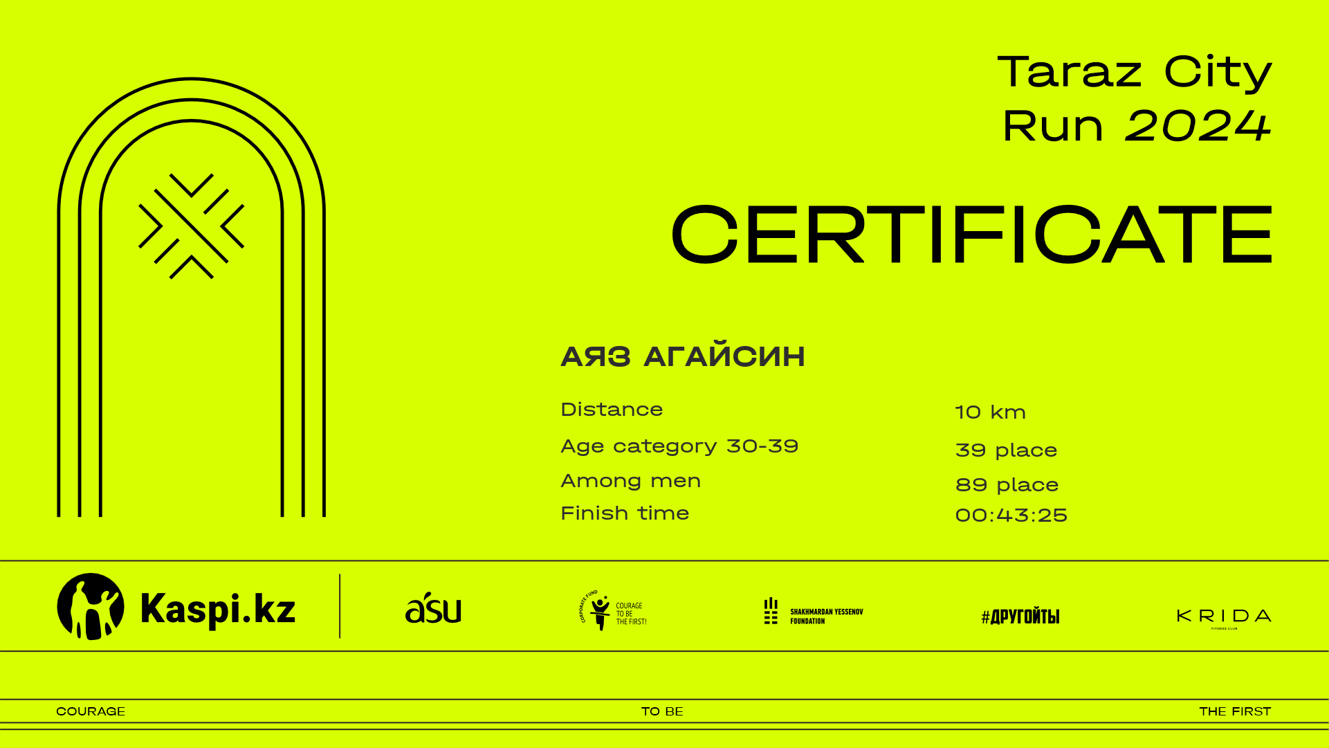 | 101 | Даулет Суинтаев | ![]() | Шымкент | 35 | 00:11:22.10 | 00:22:16.90 | 00:33:04.60 | 00:43:38.10 | 00:43:24.40 | Download |