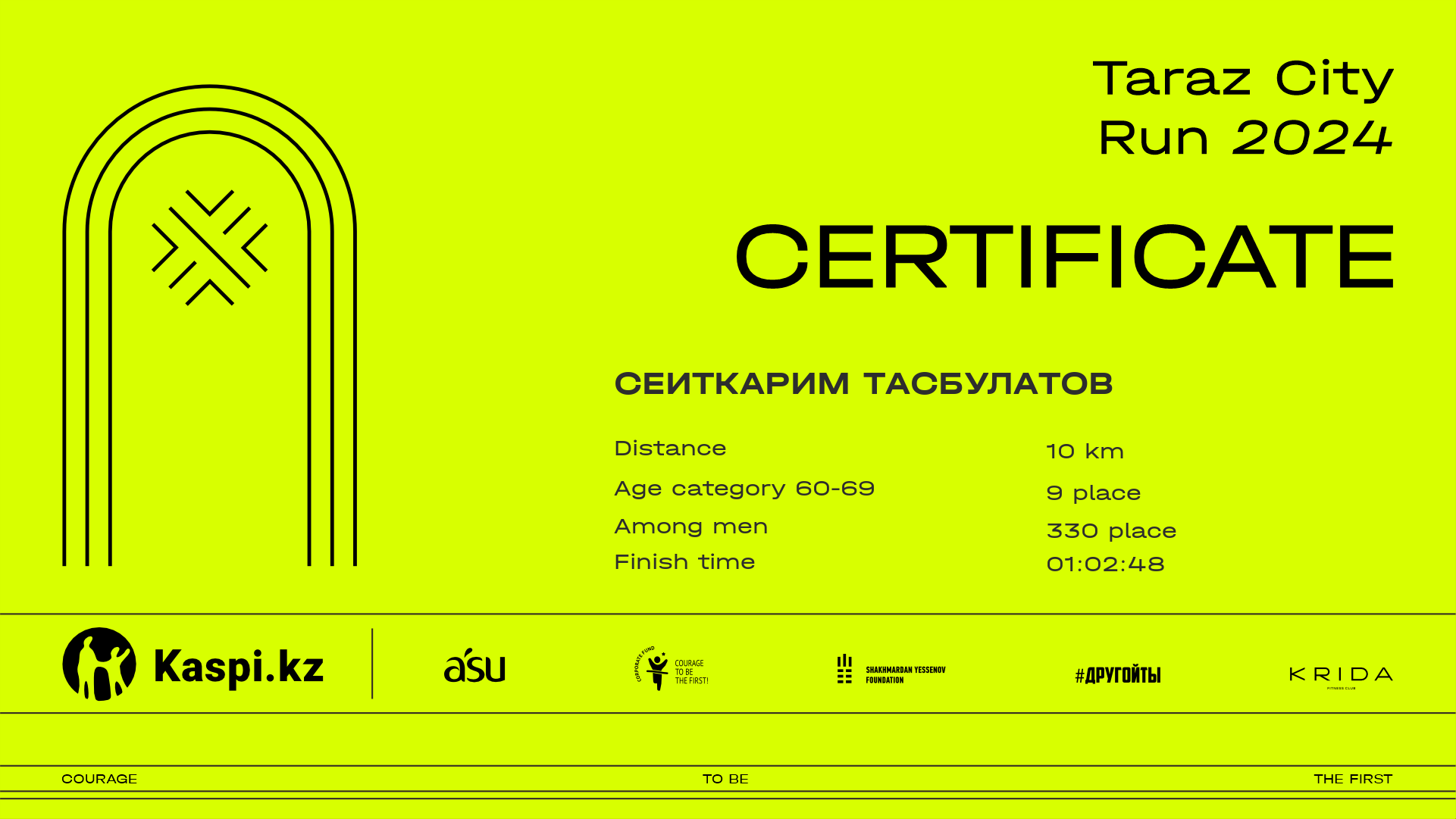 | 194 | Аманбай Молдыбаев | ![]() | Тараз | 2023 | 00:11:03.60 | 00:23:23.50 | 00:35:58.50 | 00:48:48.70 | 00:48:45.90 | Download |