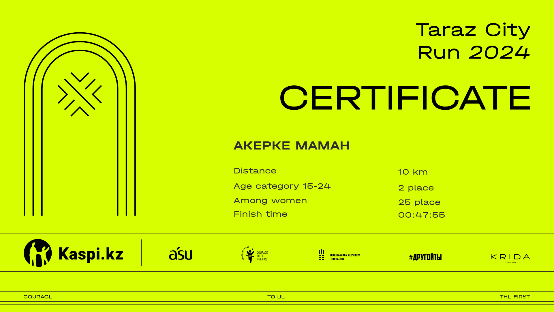 | 162 | Bekzat Zhumabay | ![]() | Алматы | 486 | 00:11:32.20 | 00:23:28.60 | 00:35:42.00 | 00:47:16.80 | 00:47:11.60 | Download |