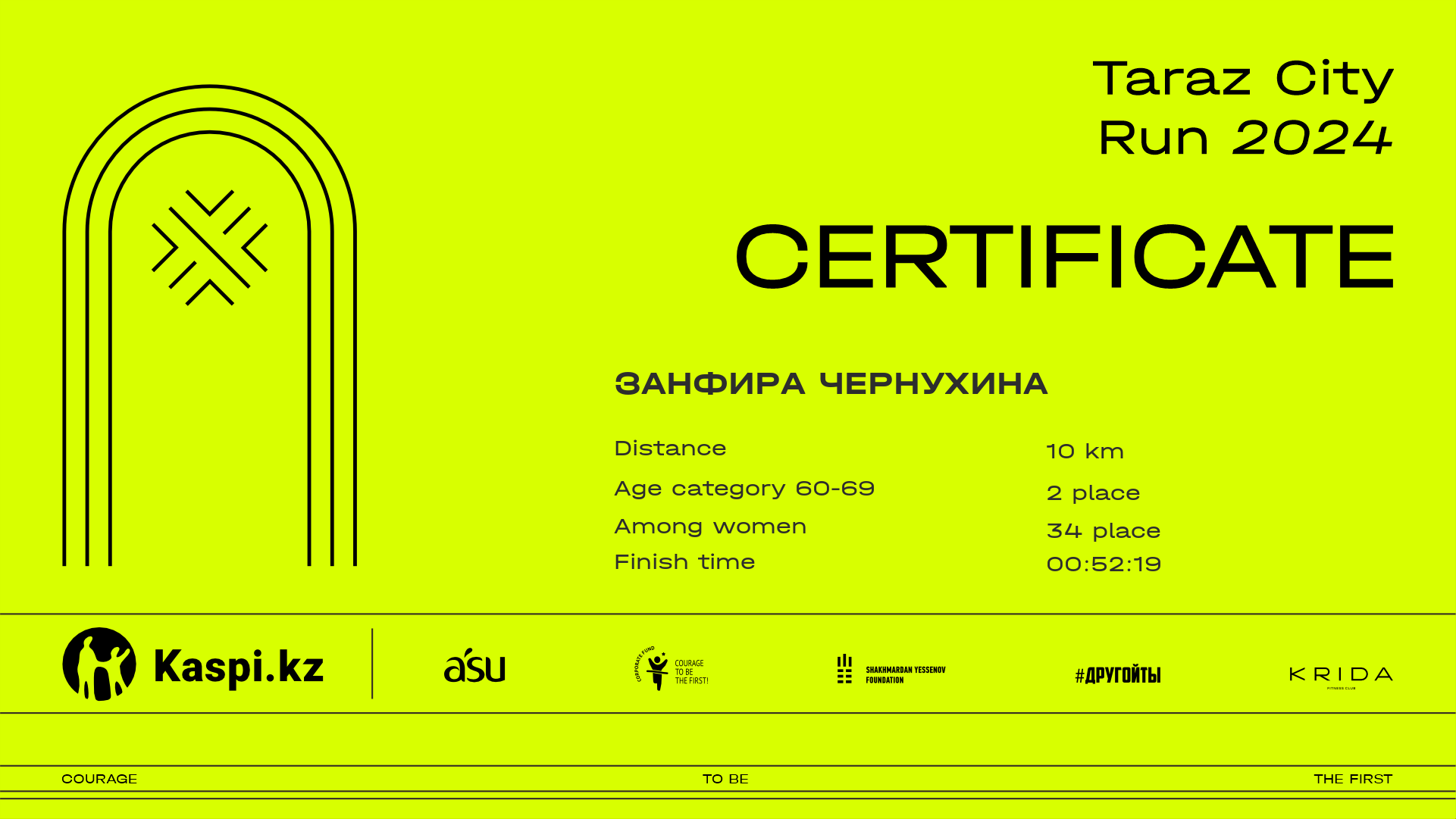 | 248 | Занфира Чернухина | ![]() | Алматы | 592 | 00:12:17.00 | 00:25:07.50 | 00:38:25.80 | 00:52:19.50 | 00:52:15.20 | Download |