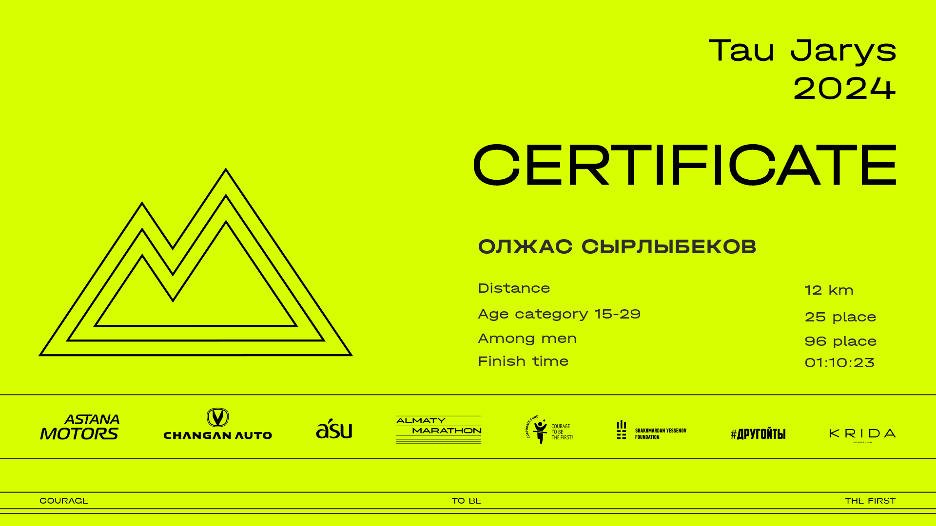 | 112 | Ерасыл Абилов | ![]() | Almaty | 157 | 00:07:50.56 | 00:21:13.29 | 00:43:00.56 | 00:58:50.63 | 01:10:44.69 | 01:10:41.82 | Download |