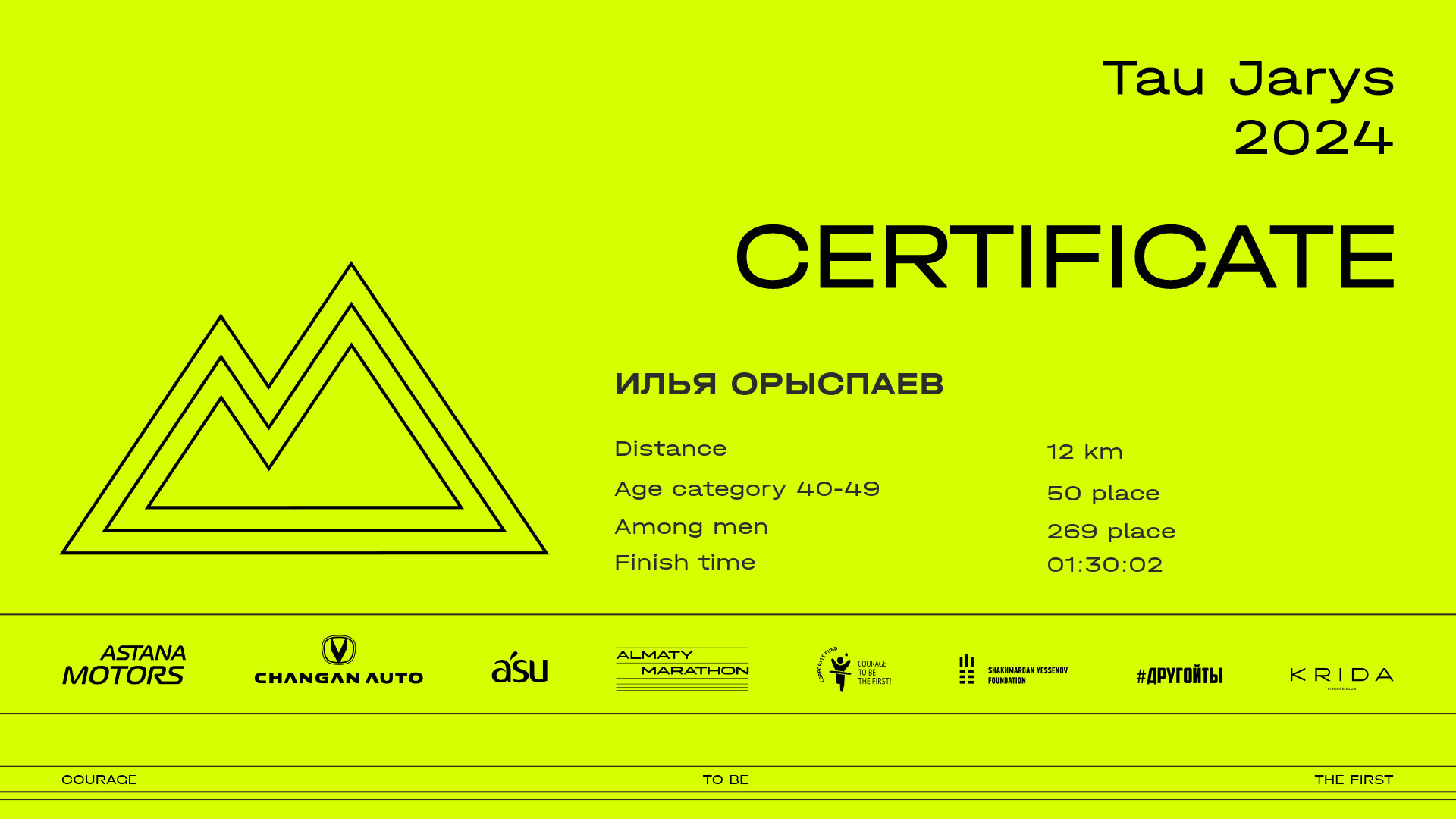 | 172 | Шокан Казтай | ![]() | Алматы | 67 | 00:09:20.74 | 00:24:21.16 | 00:47:34.29 | 01:02:37.58 | 01:15:26.89 | 01:15:25.96 | Download |