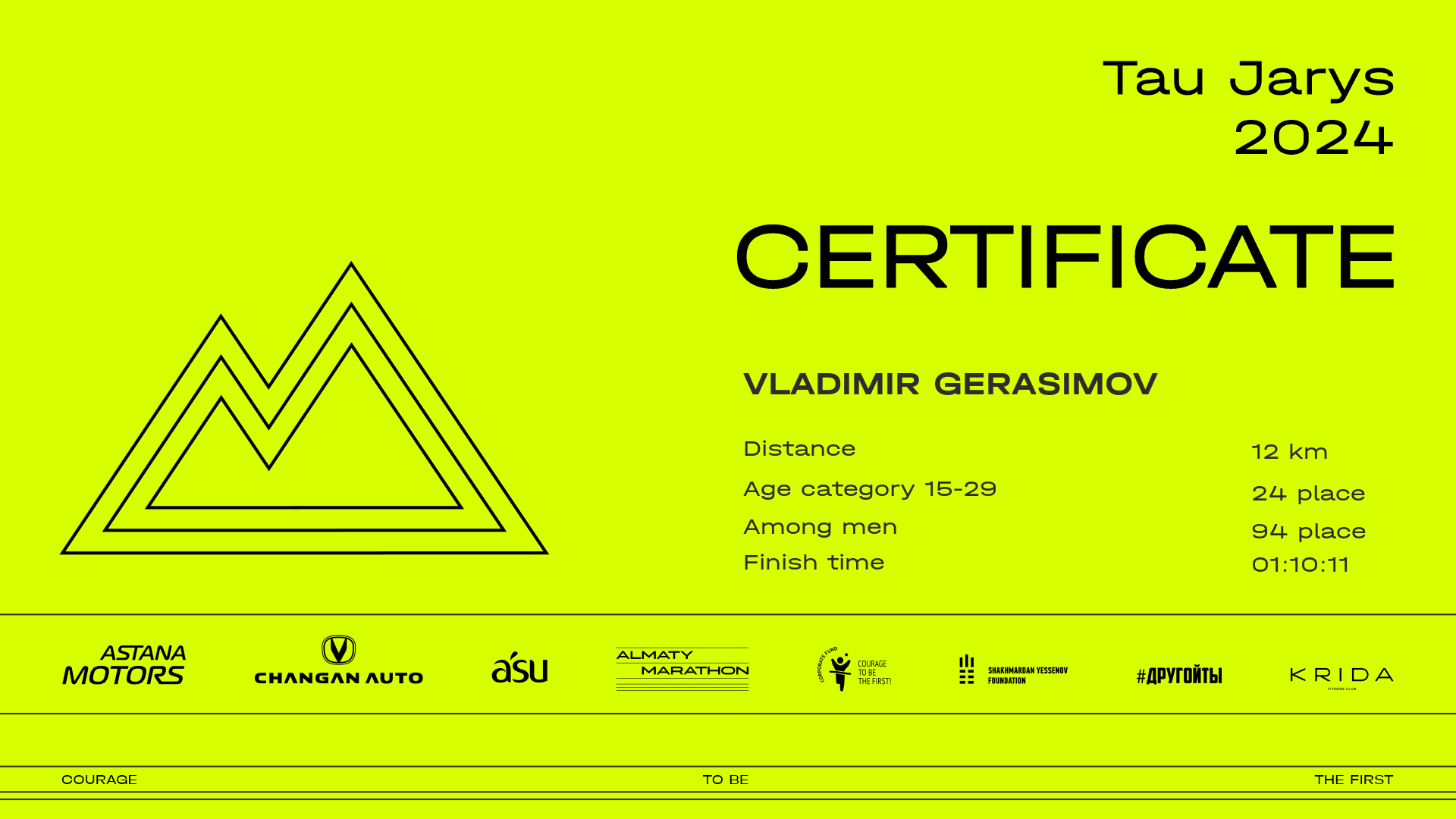| 115 | Ардабек Жылкышбай | ![]() | Алматы | 156 | 00:07:58.45 | 00:22:53.35 | 00:44:50.39 | 00:59:53.89 | 01:10:47.35 | 01:10:47.35 | Download |