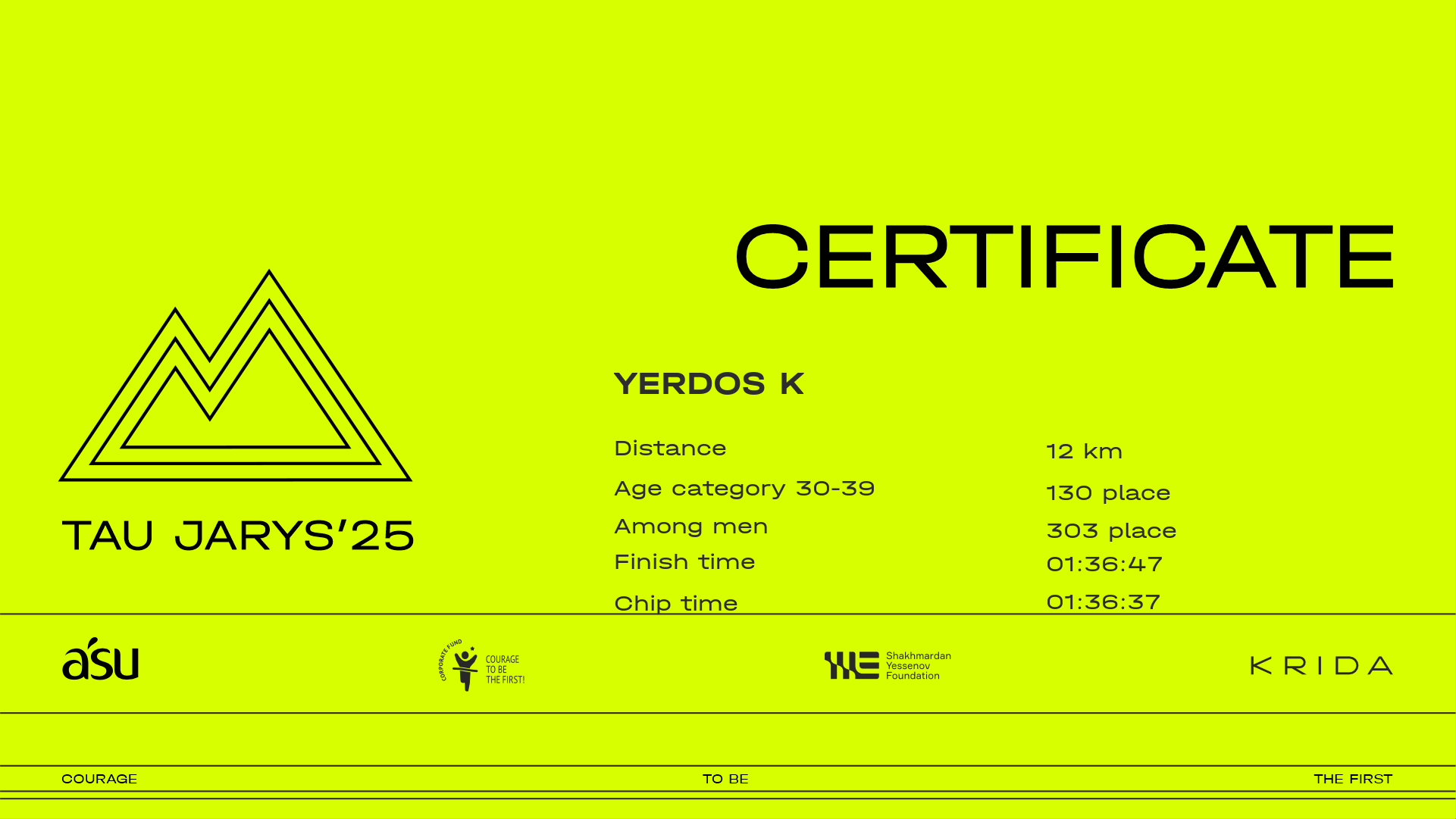 | 390 | Зарина Семенеева | ![]() | Алматы | 211 | 00:12:29.50 | 00:30:19.40 | 00:39:25.10 | 01:00:22.70 | 01:21:17.90 | 01:31:07.50 | 01:40:05.70 | 01:39:51.50 | Download |
