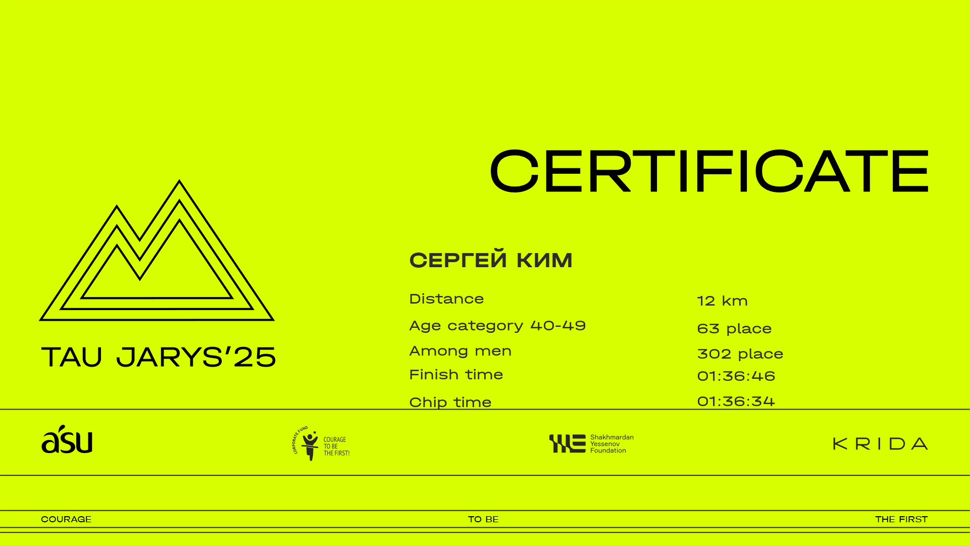| 413 | Вячеслав Абрамов | ![]() | Алматы | 406 | 00:12:36.00 | 00:31:46.70 | 00:41:54.10 | 01:04:02.00 | 01:23:49.90 | 01:33:49.70 | 01:41:53.10 | 01:41:42.80 | Download |