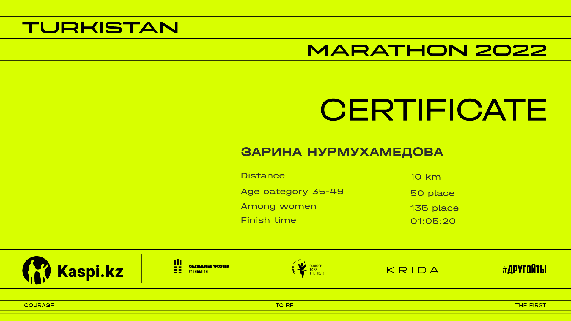 | 452 | Дина Матниязова | ![]() | Алматы | 921 | 00:33:19.58 | 01:06:14.69 | 01:06:05.20 | Download |