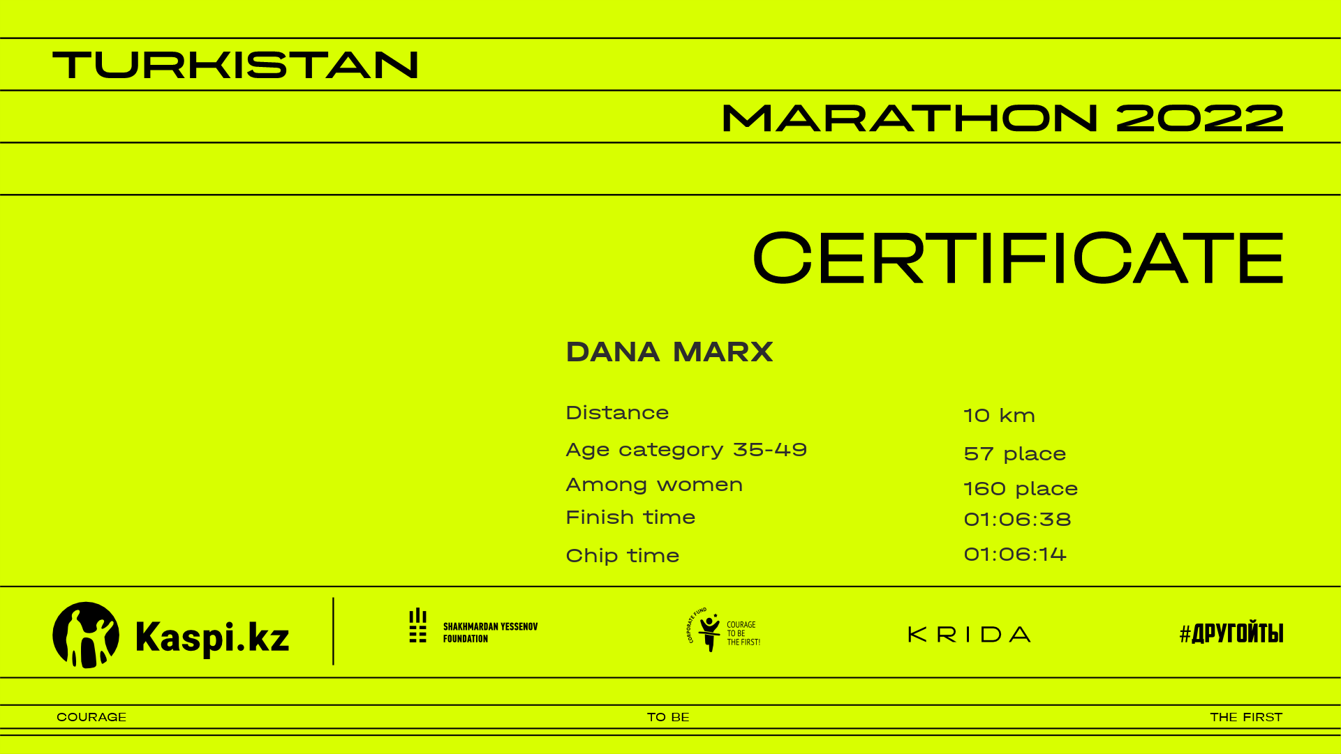 | 482 | Zhanara Ismuratova | ![]() | Алматы | 1610 | 00:33:29.54 | 01:07:14.74 | 01:07:00.43 | Download |
